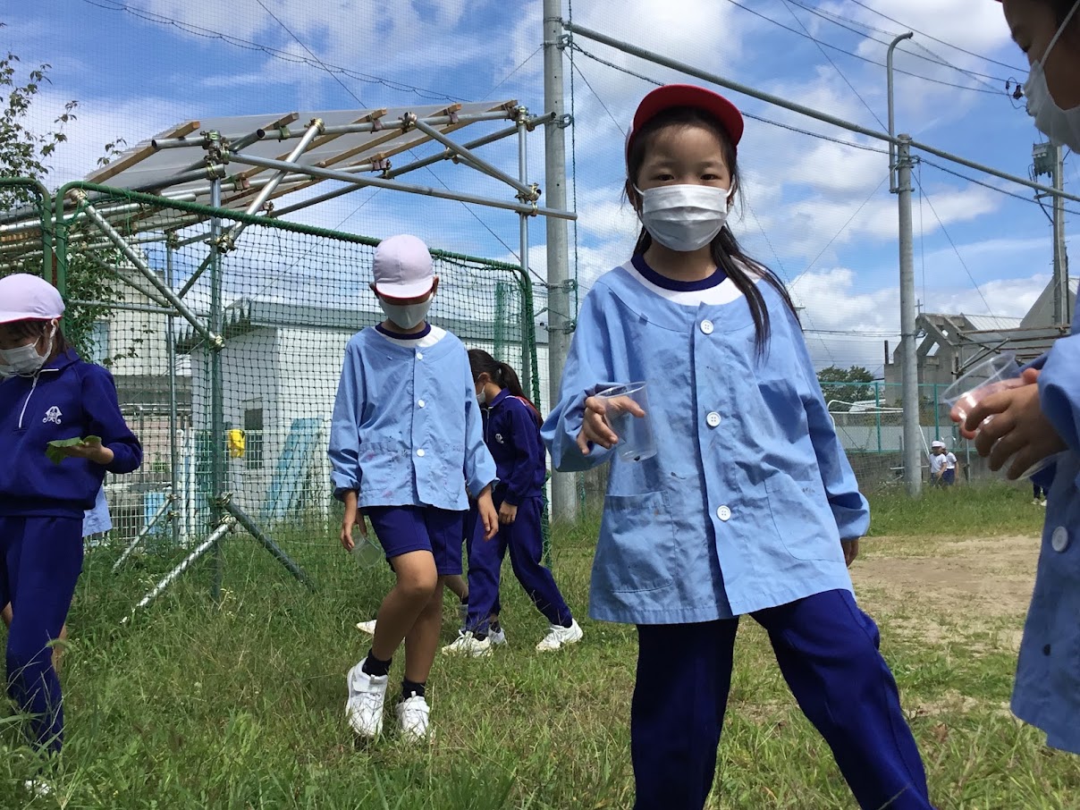 9月10日(金)、学校のまわりや教会の庭に行って、虫を捕まえて観察する