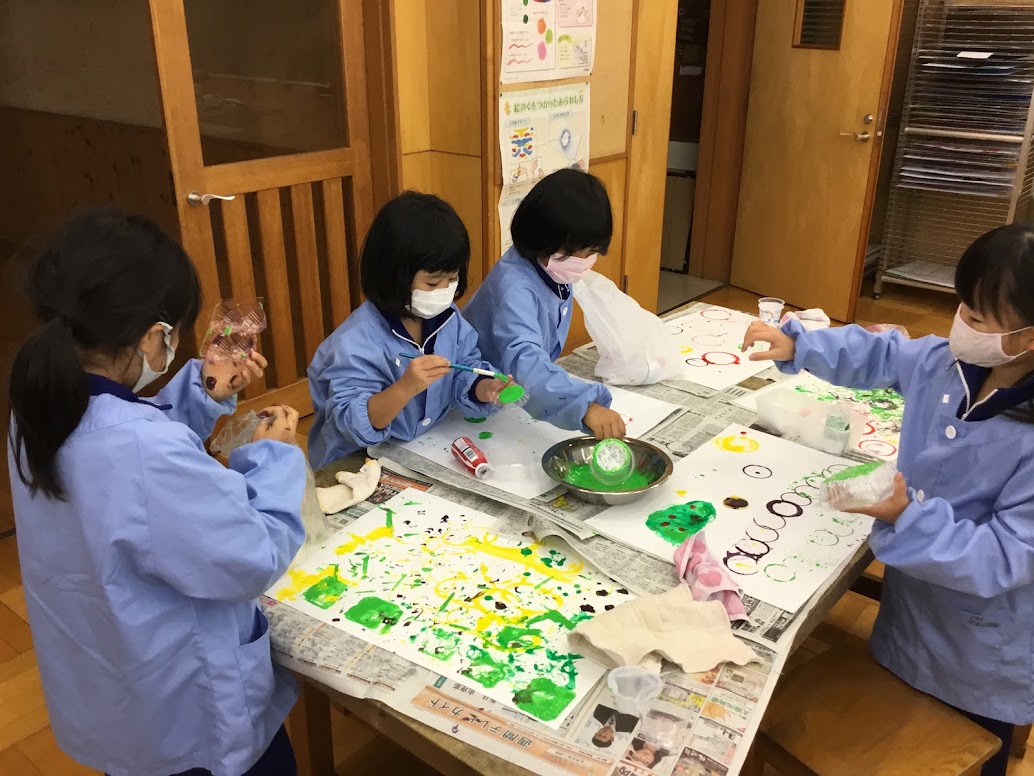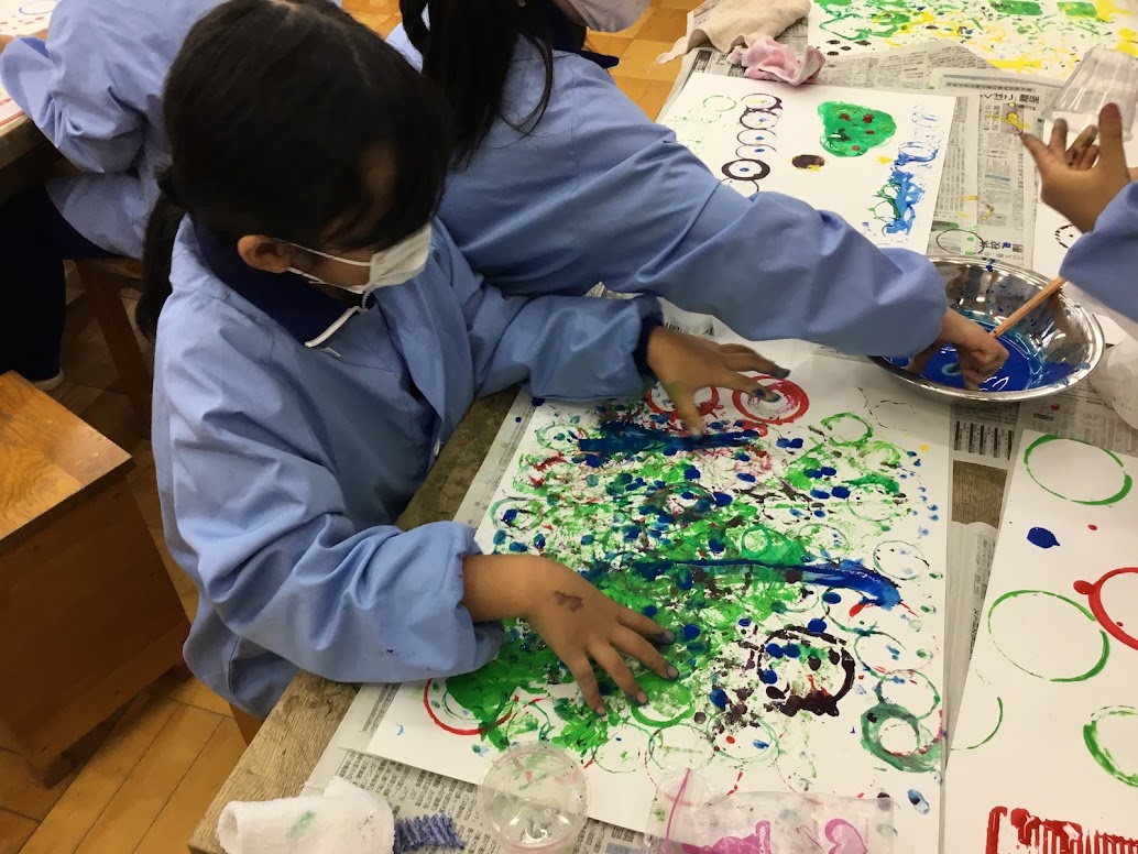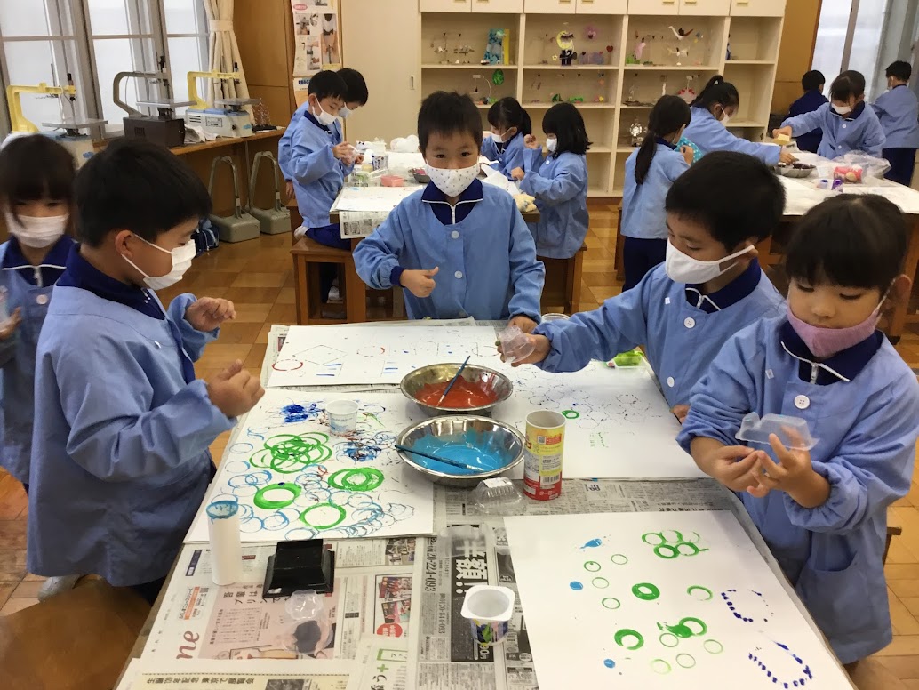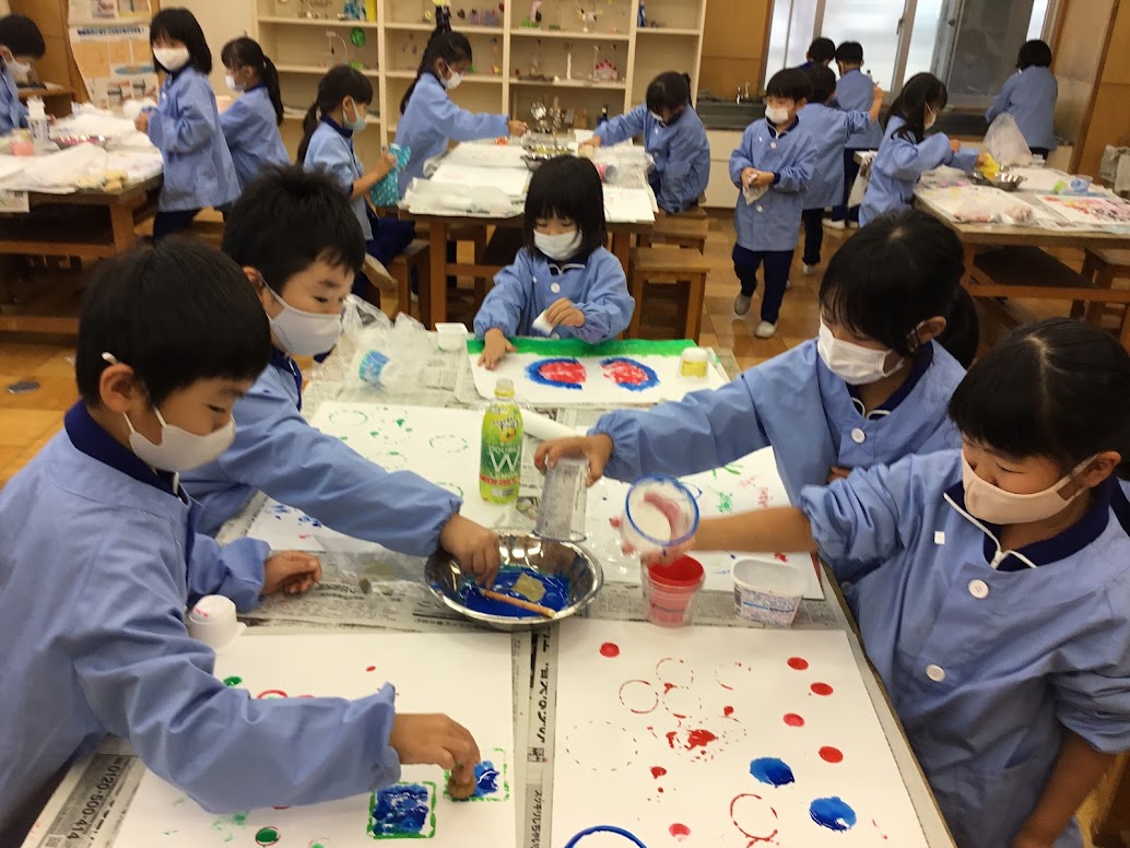 11月9日(火)、1年生の図工で「スタンプスタンプ」という単元で