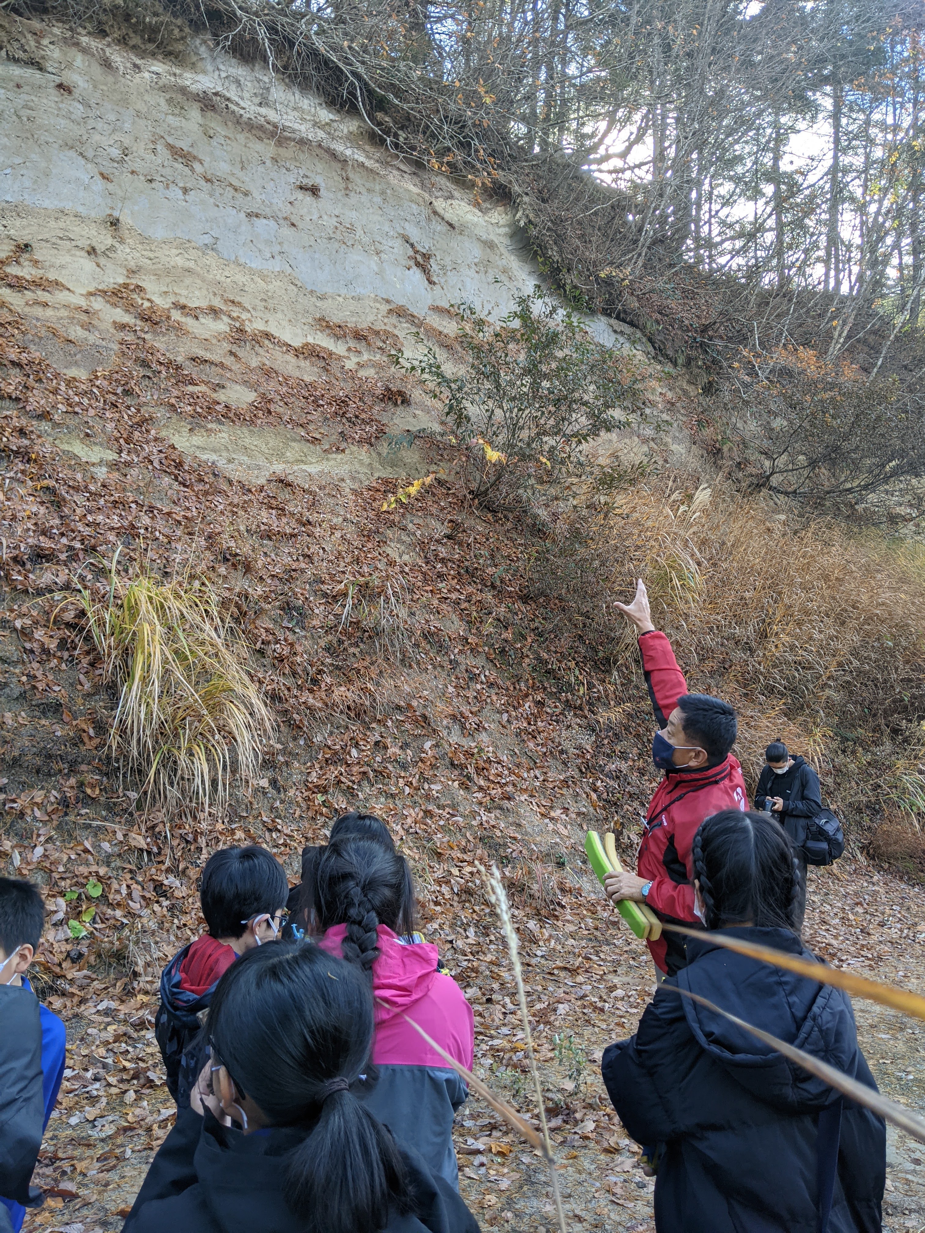 実際に地層にさわり、砂や泥、火山灰などの種類が違うものが積み重なっていることを、体験を通して学んできました。