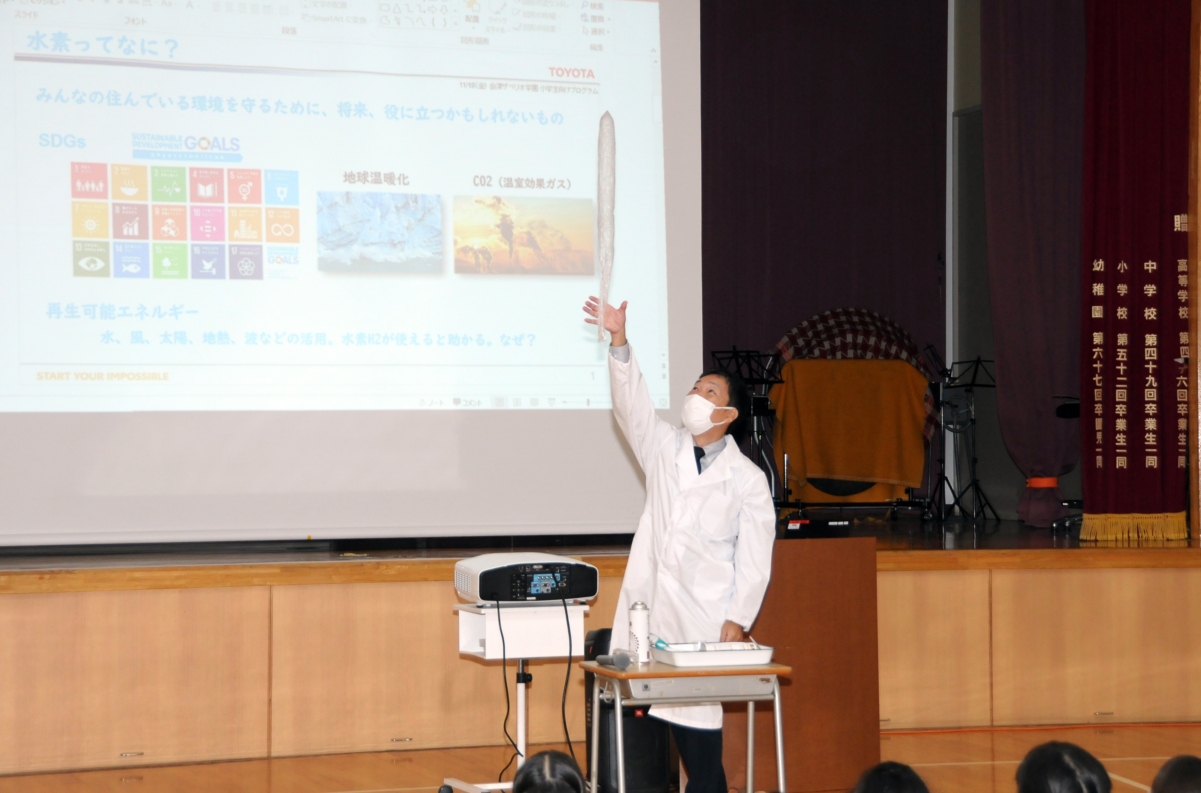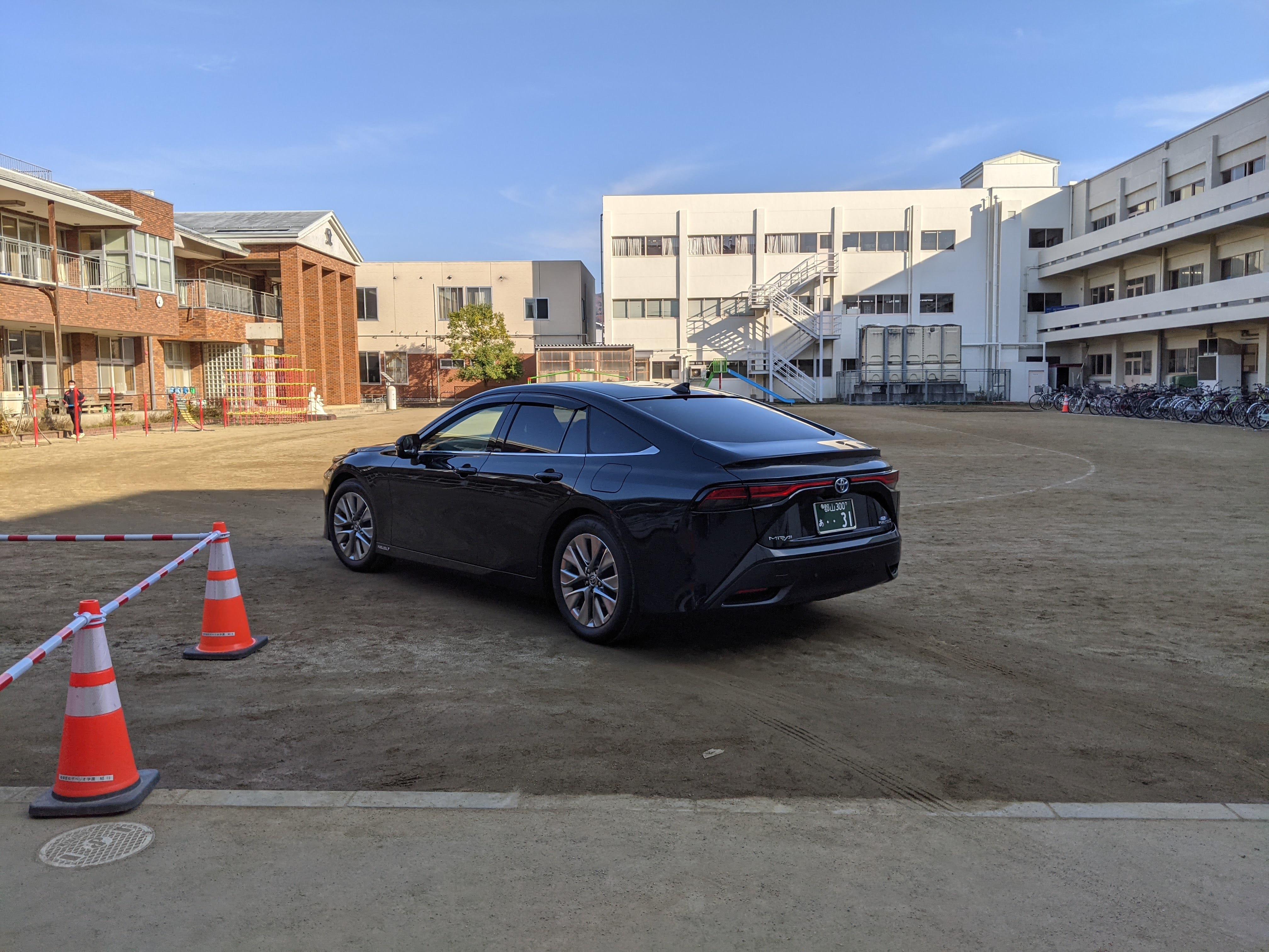 11月19日(金)、ザベリオ学園小学校に水素燃料電池で走る車が2台来ました。