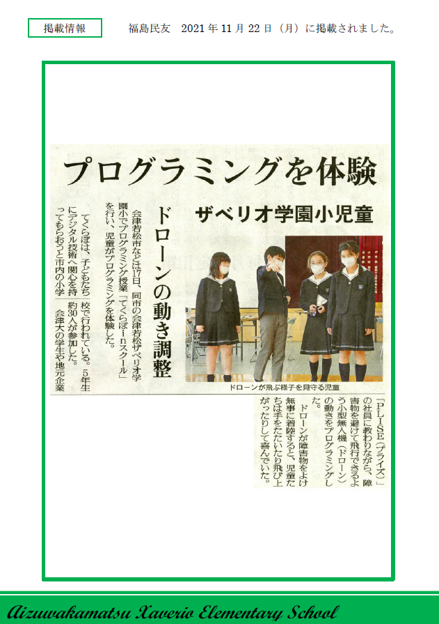 てくらぼ in スクールの様子が福島民友に掲載されました!