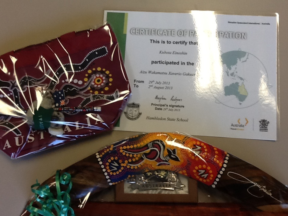 学校からも、アボリジニのブーメランをいただきました。