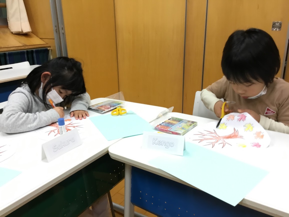 上手に色を塗ったり、ハサミできれいに切り取ったりしていました。