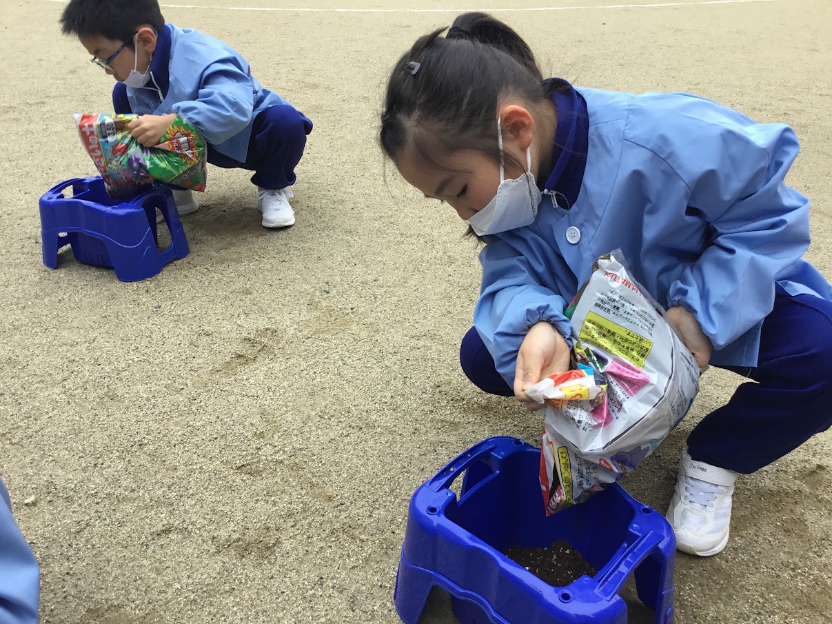 5月17日(火)、1年生の生活科でアサガオのたねまきをしました。