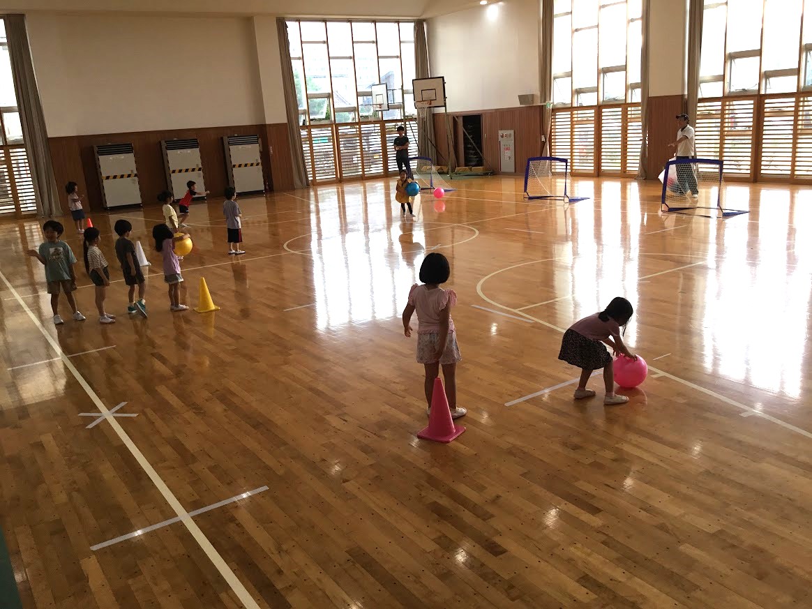 タグ取りおにごっこをしたり、ボールシュートゲームをしたりしました。