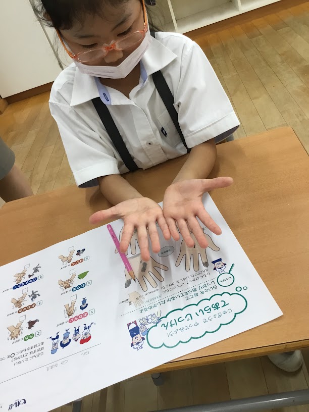 7月16日(土)、1年生が手の洗い方について学習しました。