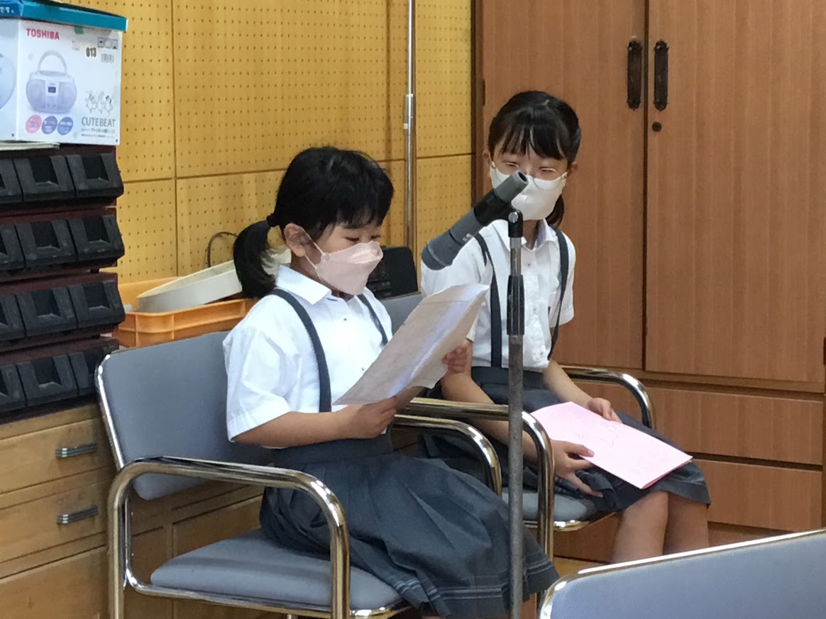 2、4、6年生の代表児童が1学期に頑張ったことを発表したり、