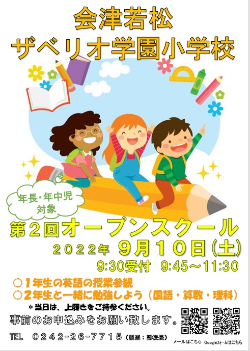 9月10日(土)に年中・年長児対象の第2回オープンスクールを行います。