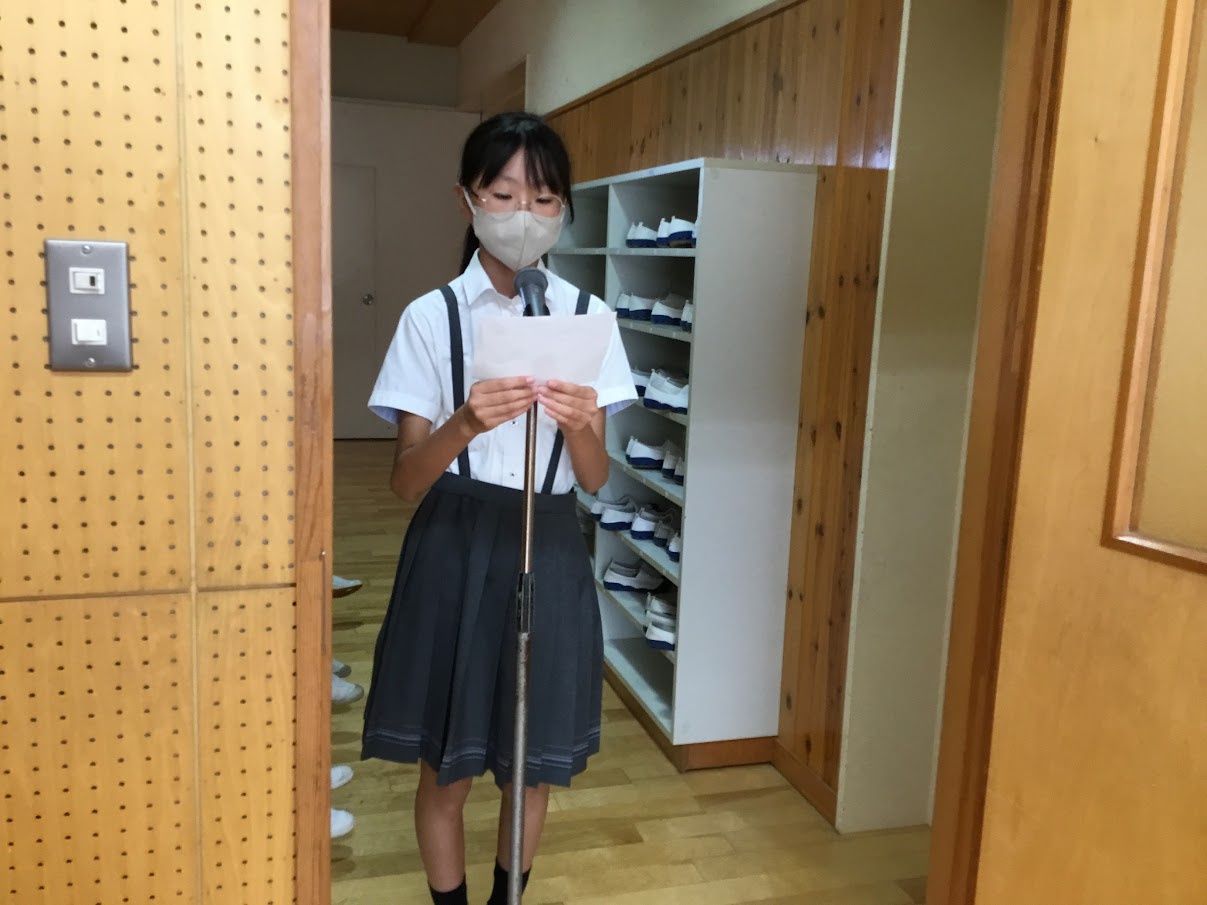 代表児童による7・8月の生活目標の振り返りや、