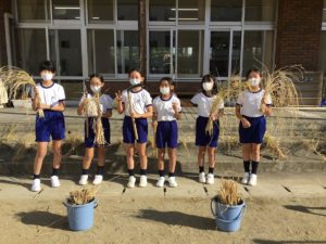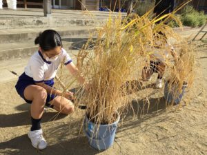 10月4日(火)、5年生が育てていたバケツ稲が収穫の時期になり、