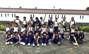 5年生は電車で湯野上温泉に行き、足湯に入ったり、