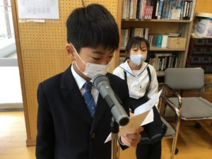 12月16日(金)、1~6年生の代表児童が12月の月目標の反省を