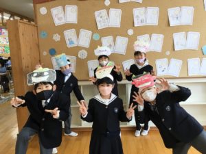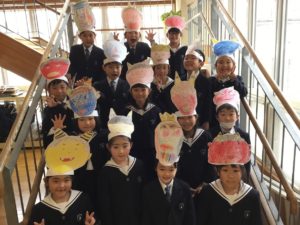 2月3日(金)、1・2年生が節分のお面づくりや豆まきをしました。