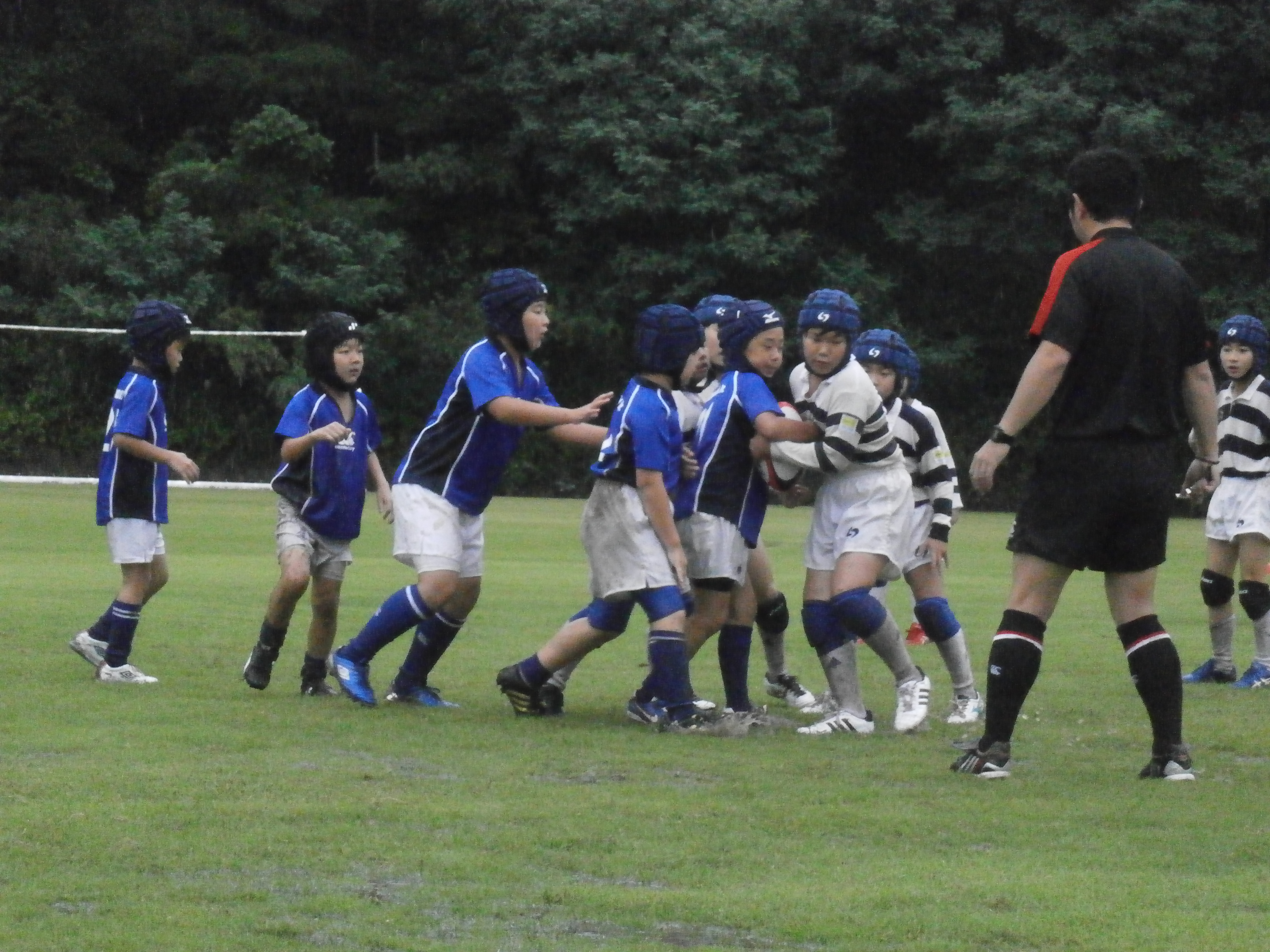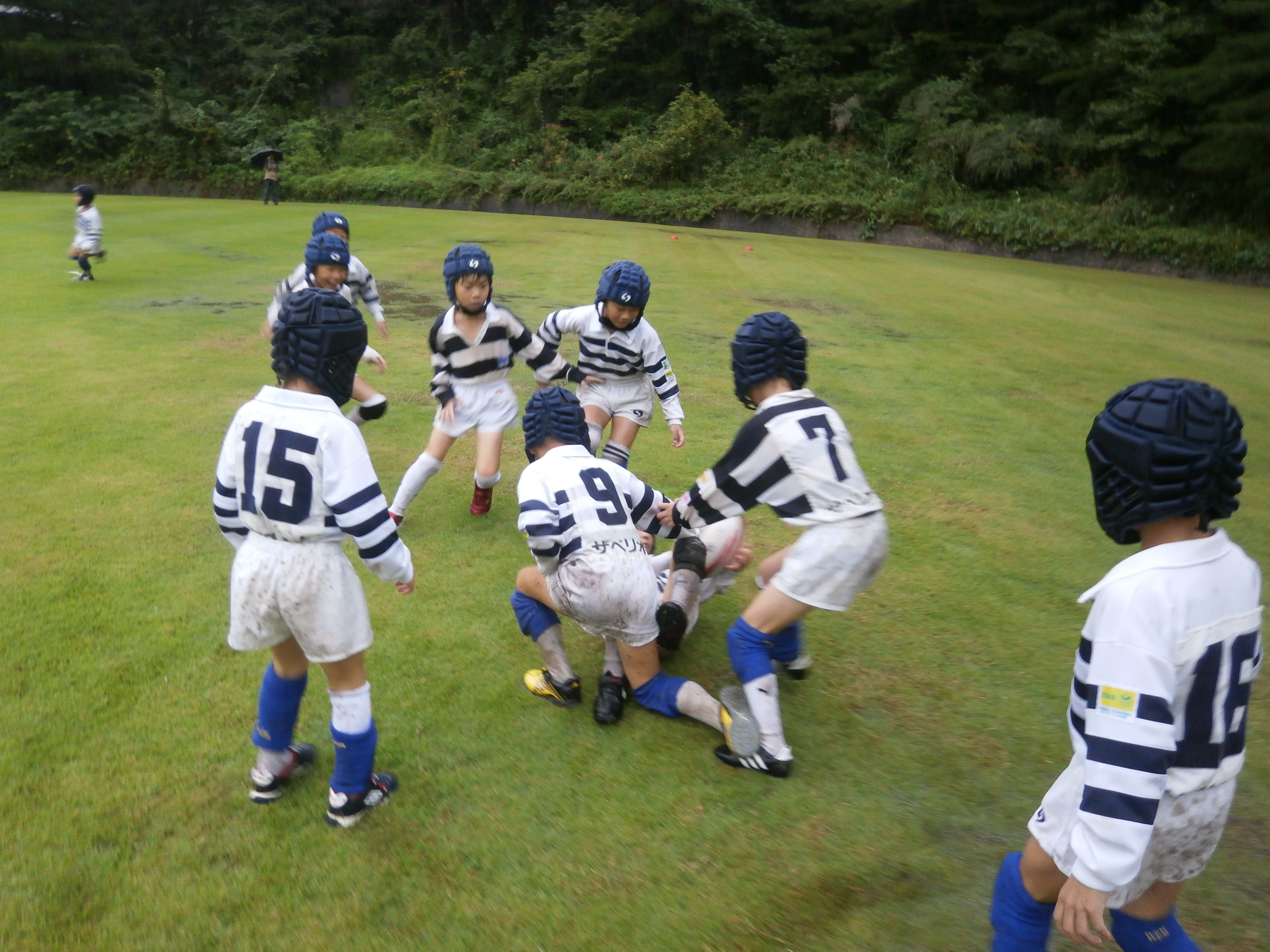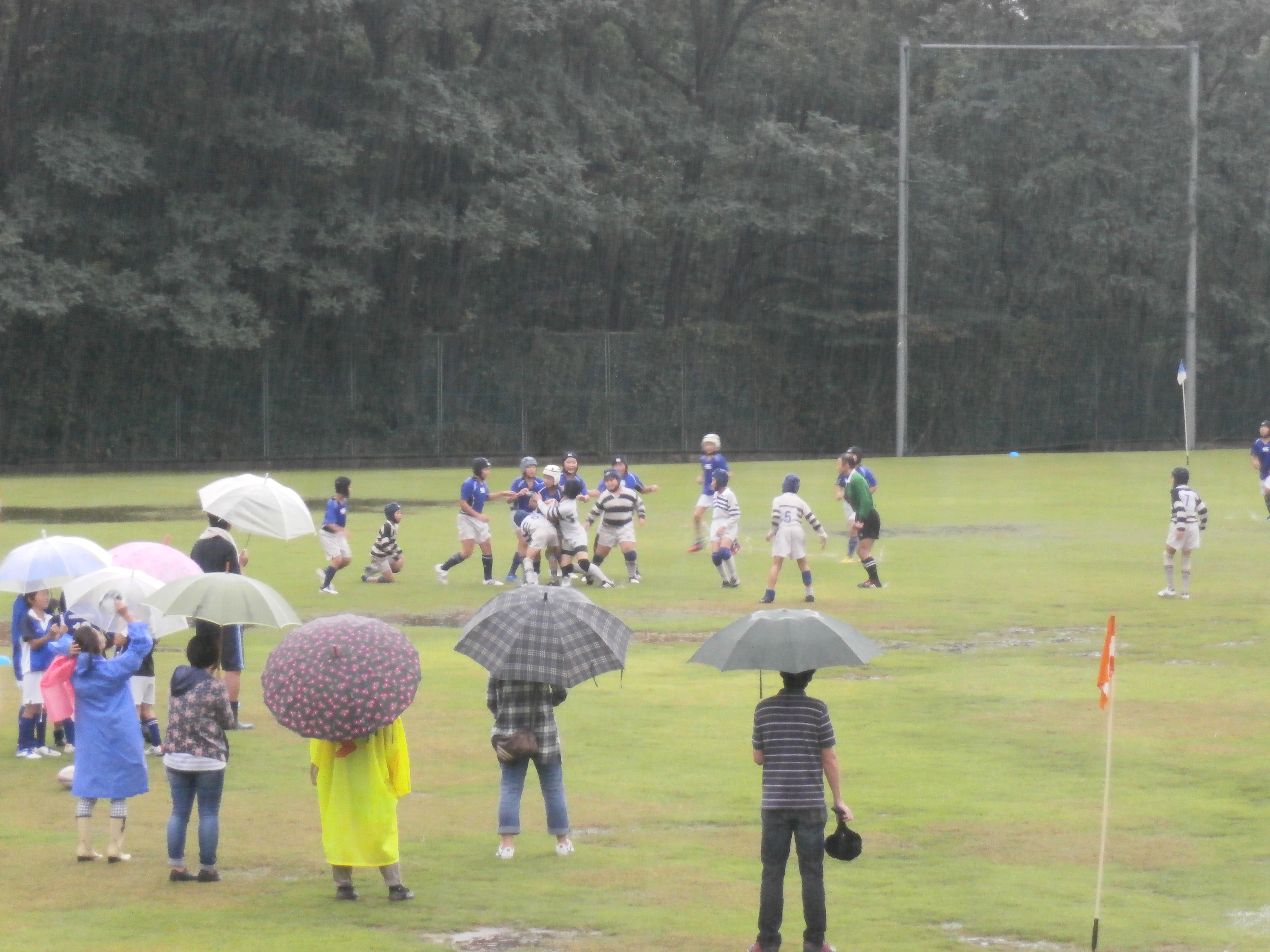 台風18号の強い風雨をうける中、懸命にプレイをするラガーマン達