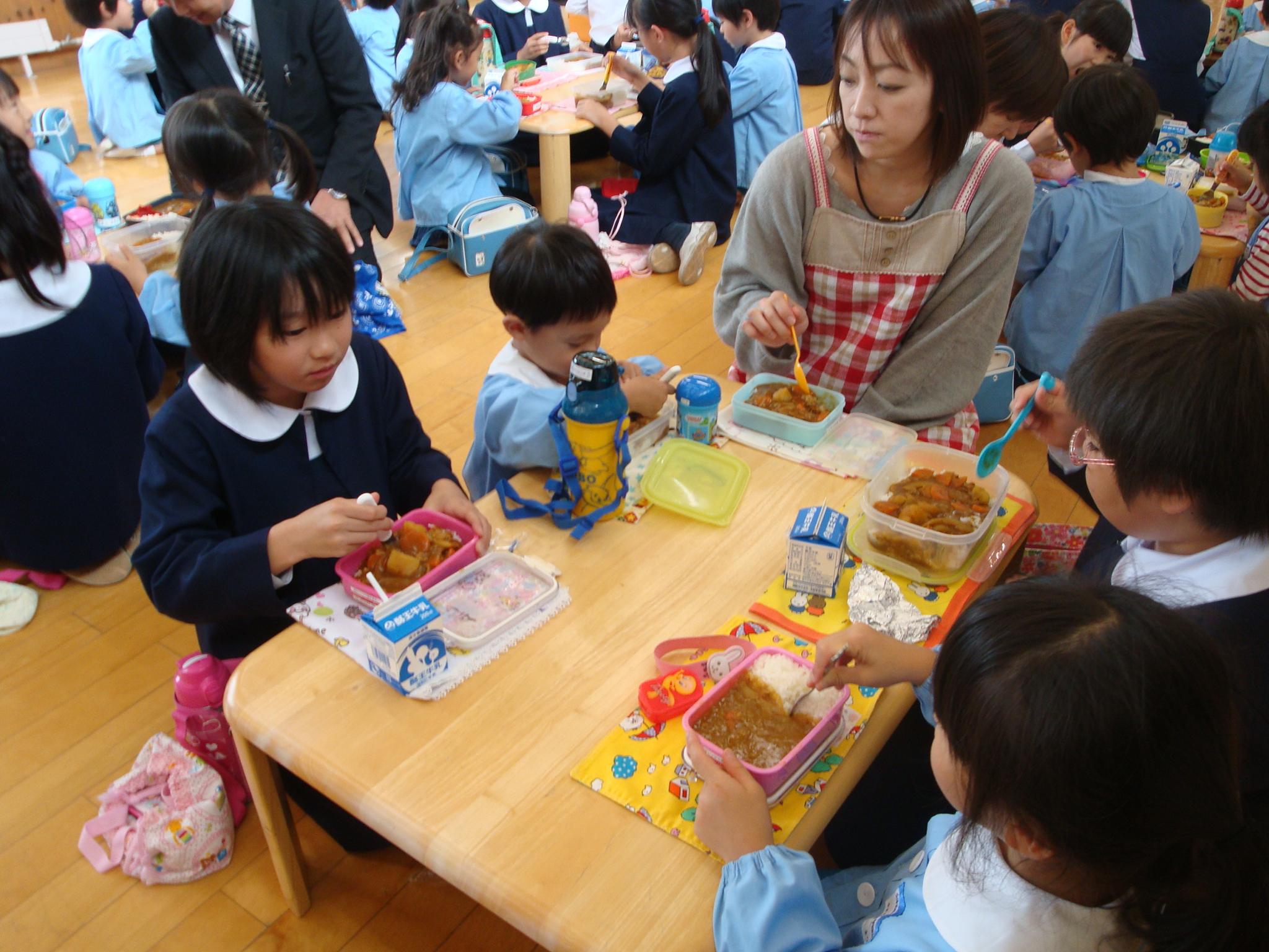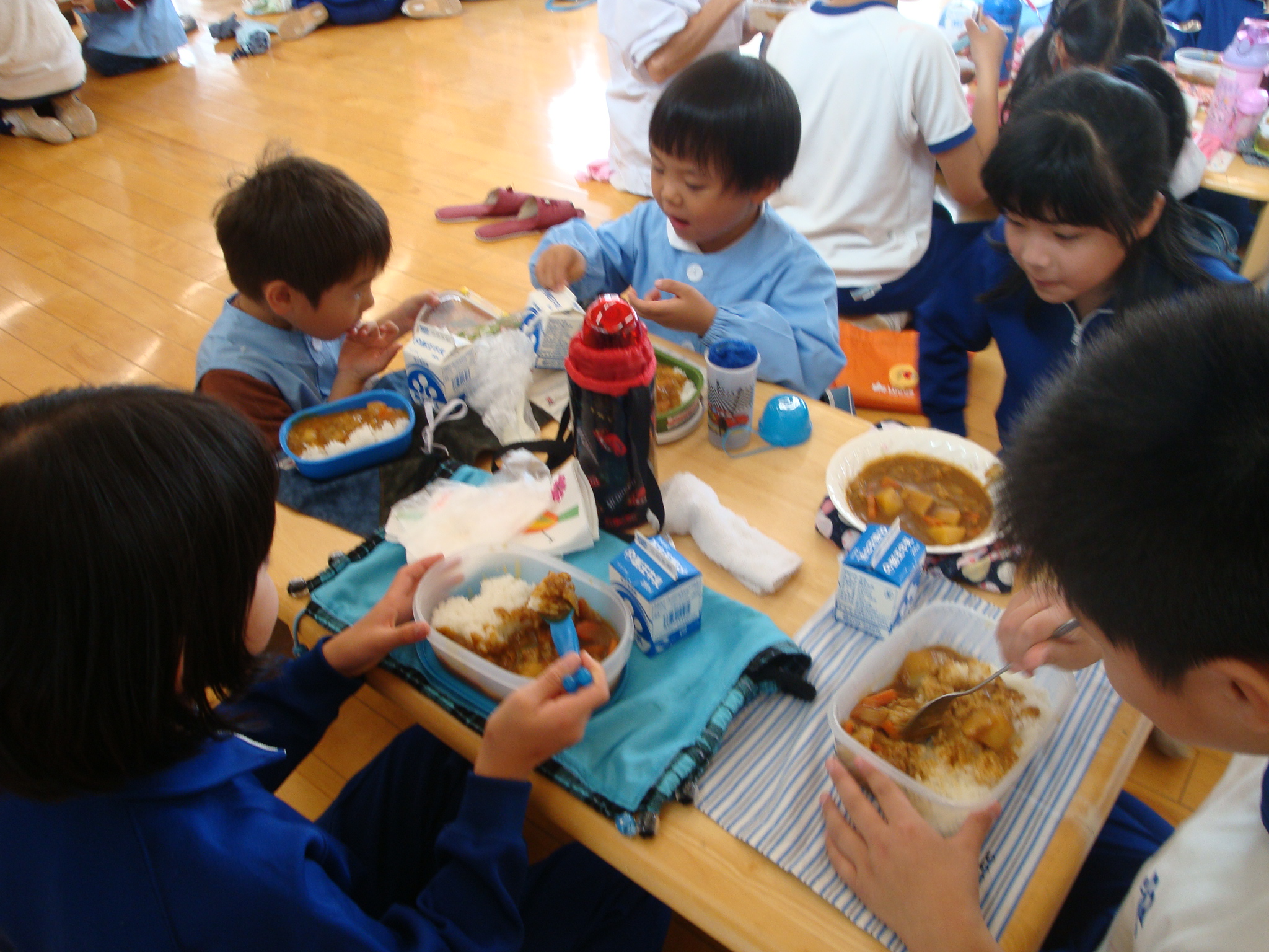 幼稚園・小学校の兄弟クラスで一緒にカレーを食べて、楽しかったね。