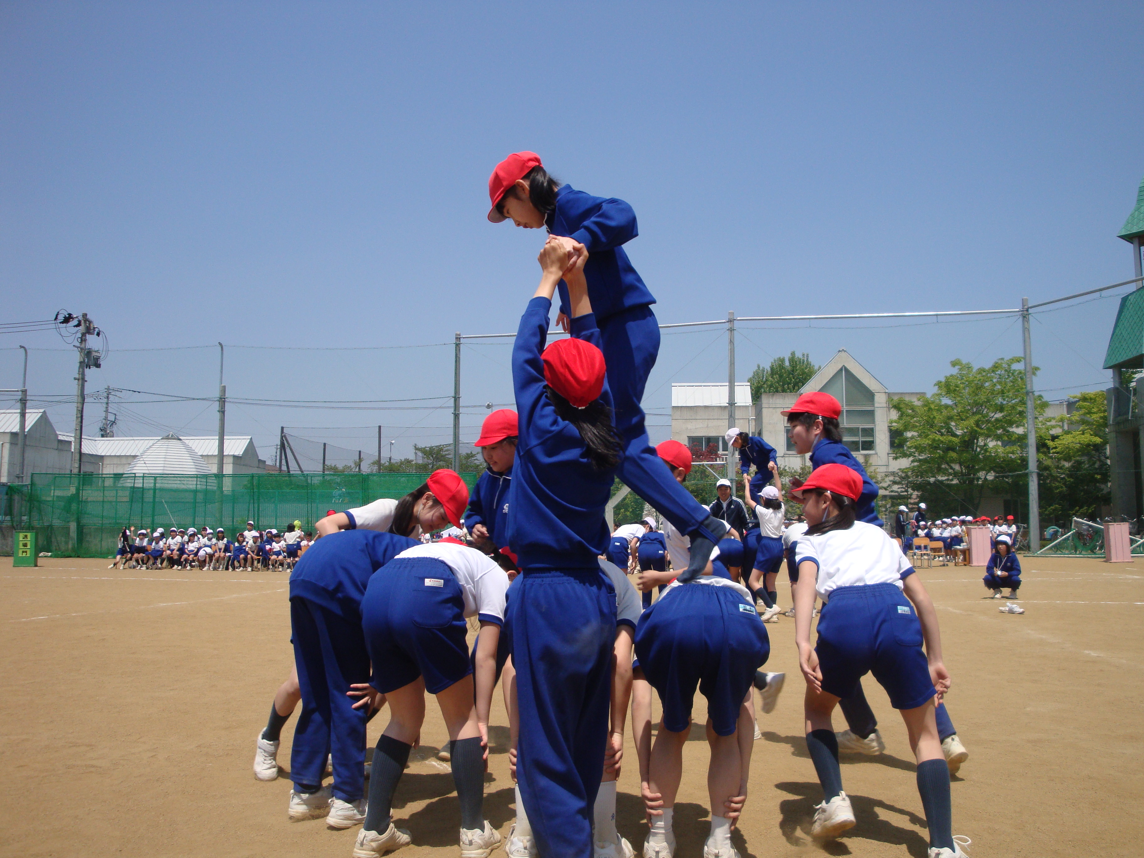 くも一つない真っ青な空の下、ザベリオ学園小学校の児童が紅組と白組に分かれて