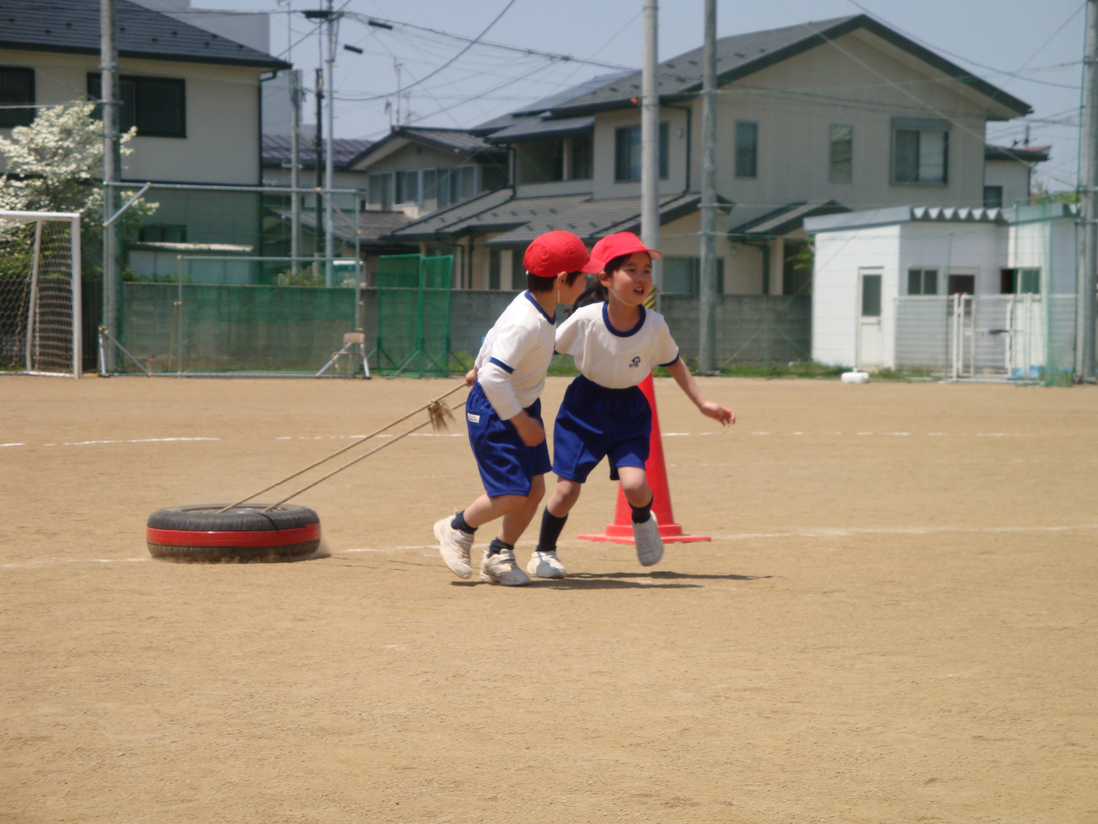 6年生の波乗りジョニー!みんなで支えます! 1年生のタイヤ引き。重いけど頑張るぞ~!