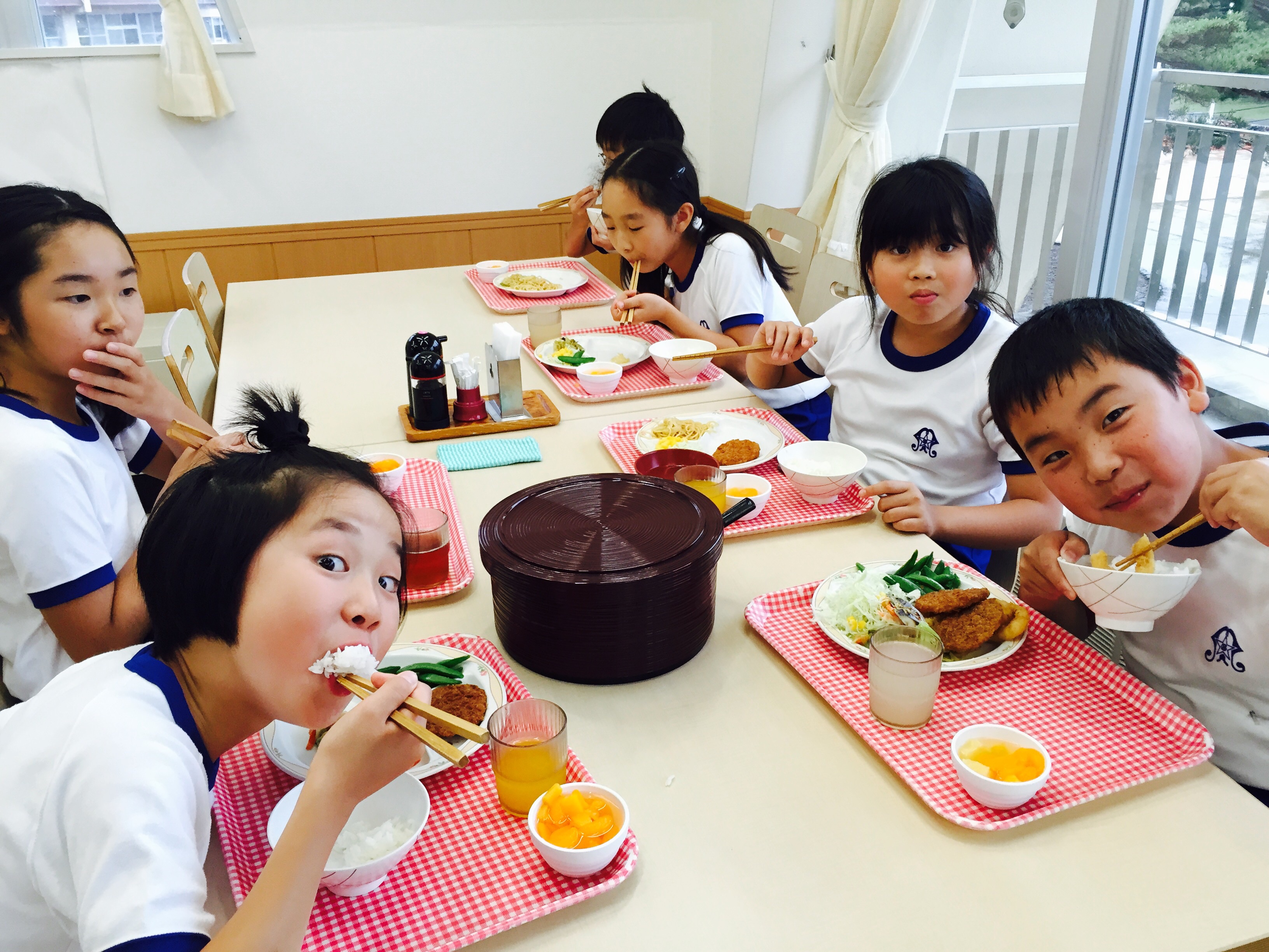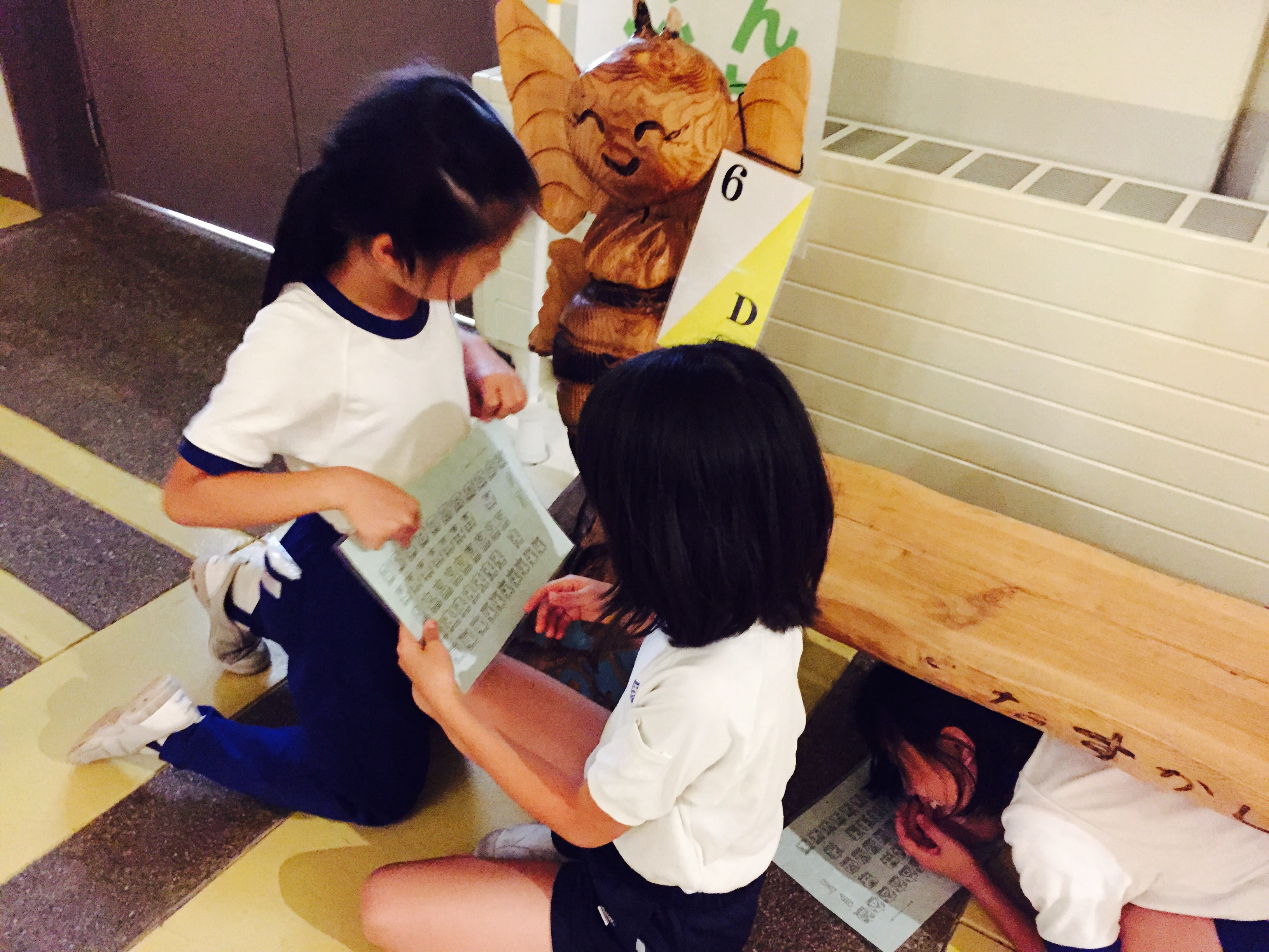 あいにくの雨模様ですが、午後の野外冒険ハイキングは無事に行えました。現在、夜のプログラム 室内オリエンテーリング を行っています。各班協力して暗号を解読しています。4年生、5年生共に全員元気です。