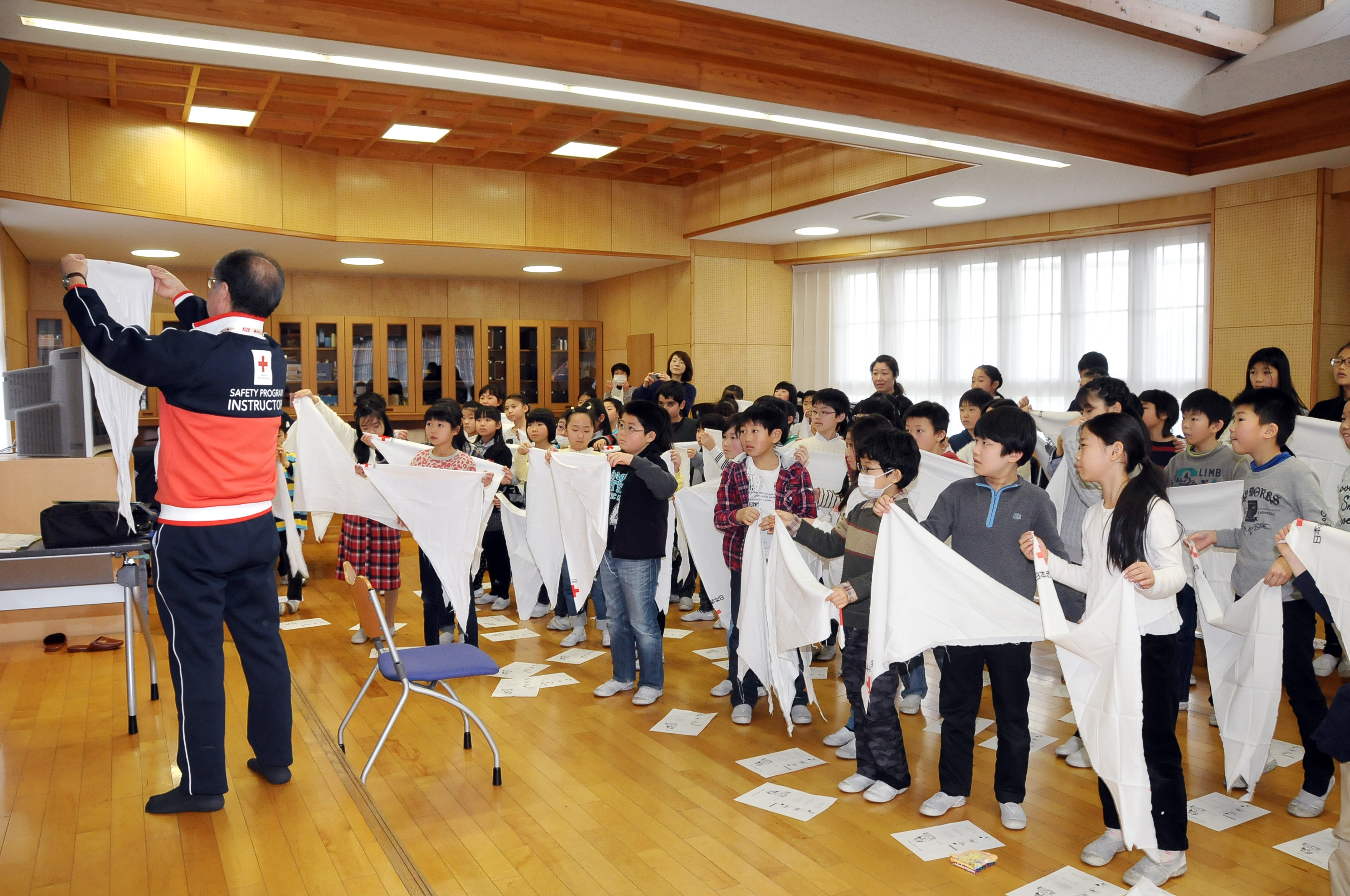 そして、低・中・高学年に分かれて応急処置や救命処置、AEDの使い方についての講習を受けました。
