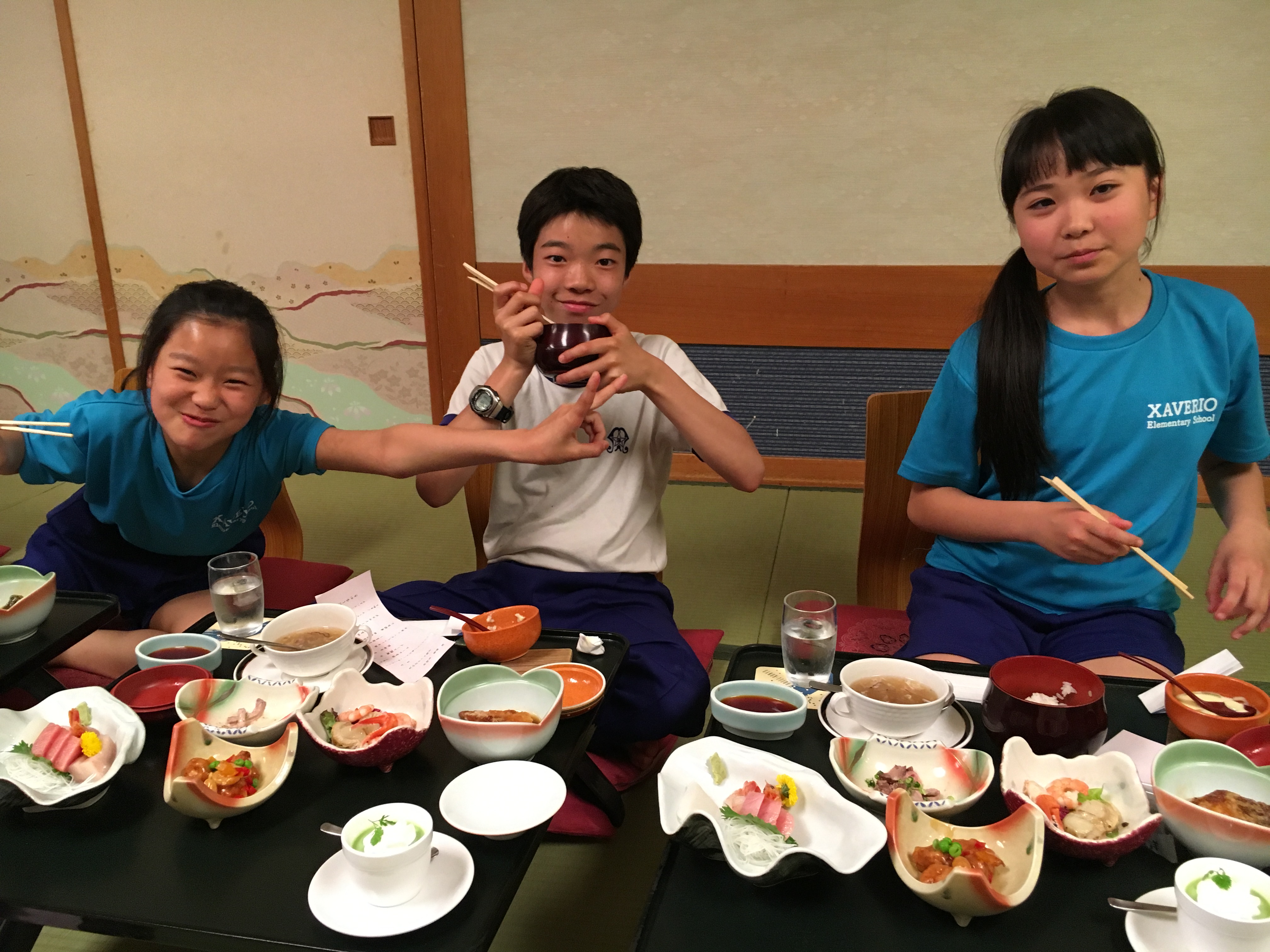 新鮮なお刺身に、茶碗蒸し、ふかひれスープ、目の前のご馳走に自然と笑みがこぼれます。