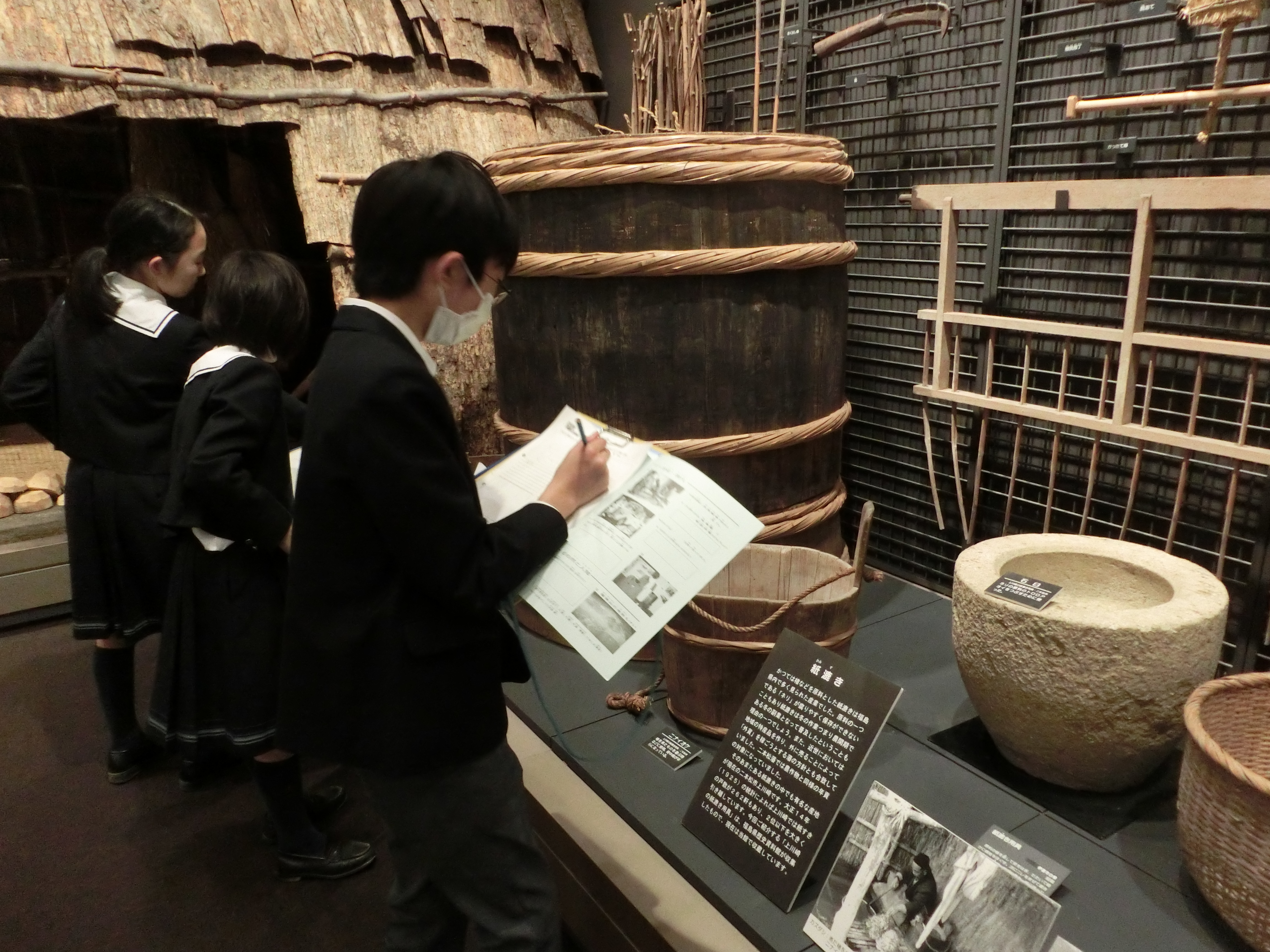 館内では、時代ごとに展示されている資料をじっくり見たり、学んだことをワークシートにまとめたりしました。真剣な眼差しはさすが6年生です。