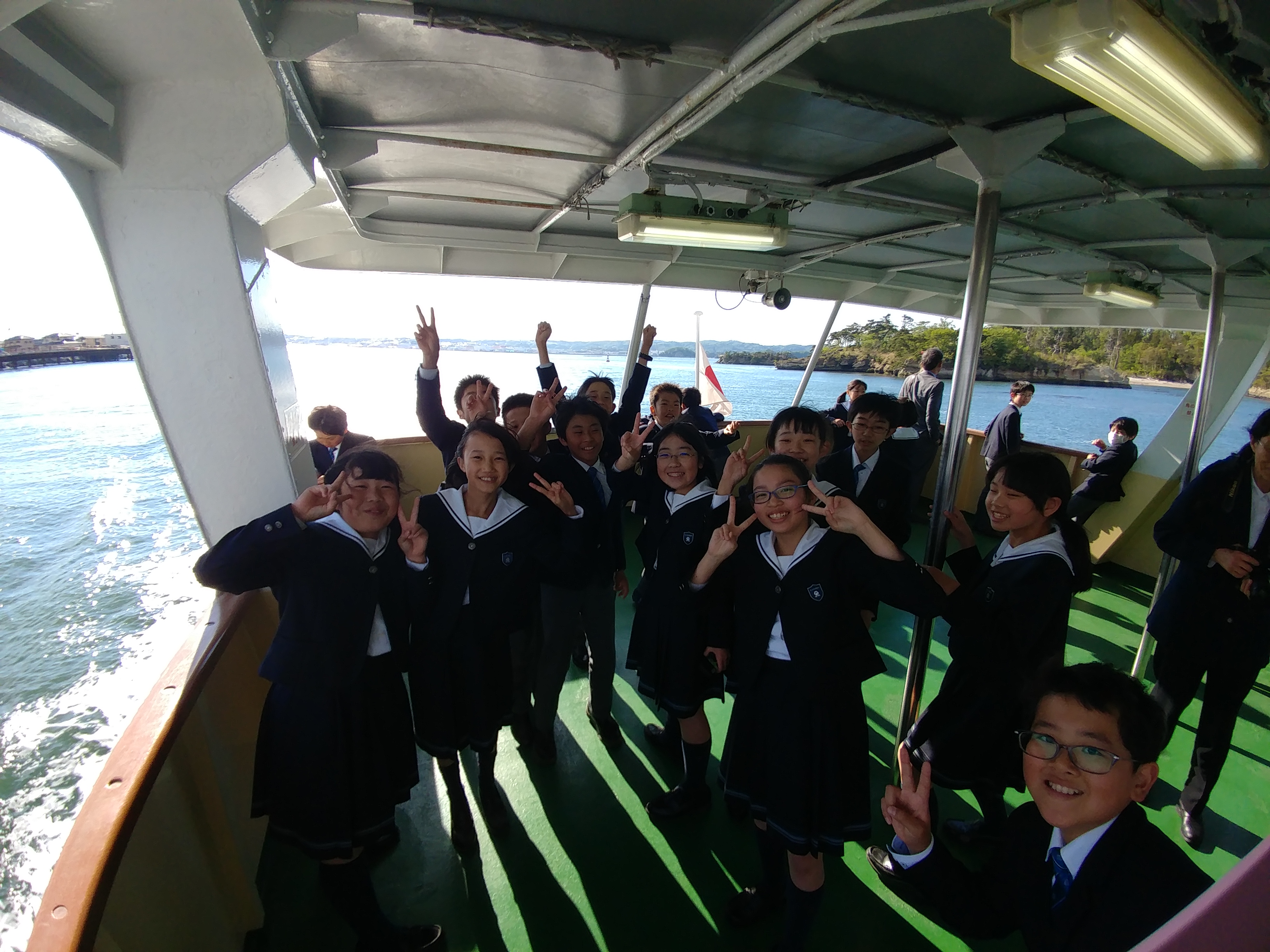 船にのって松島湾を遊覧中です。