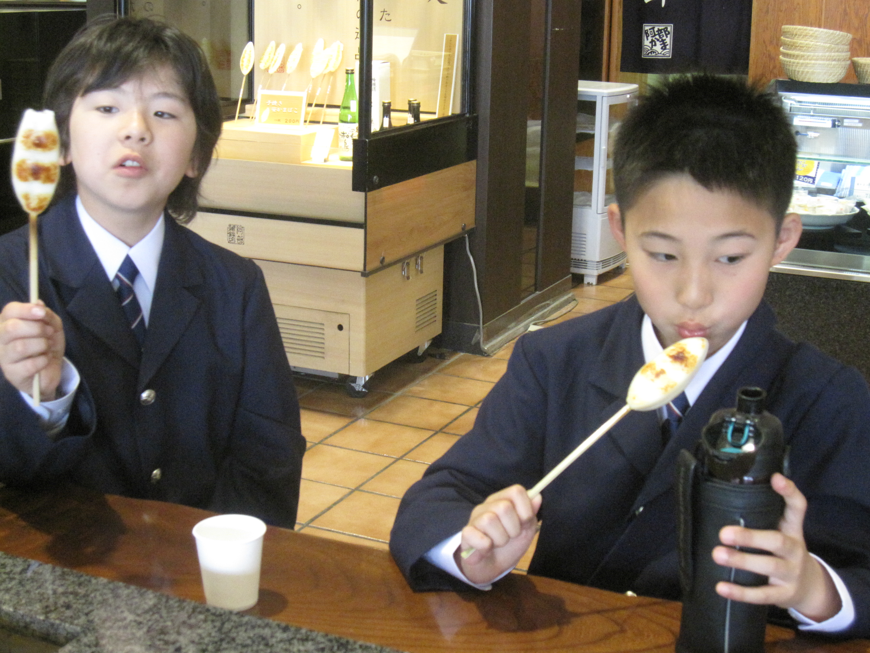 レトロ館で昔の道具やおもちゃを見たり、手にとったり、また阿部かまぼこ店で、ささかまを焼いて食べたり、