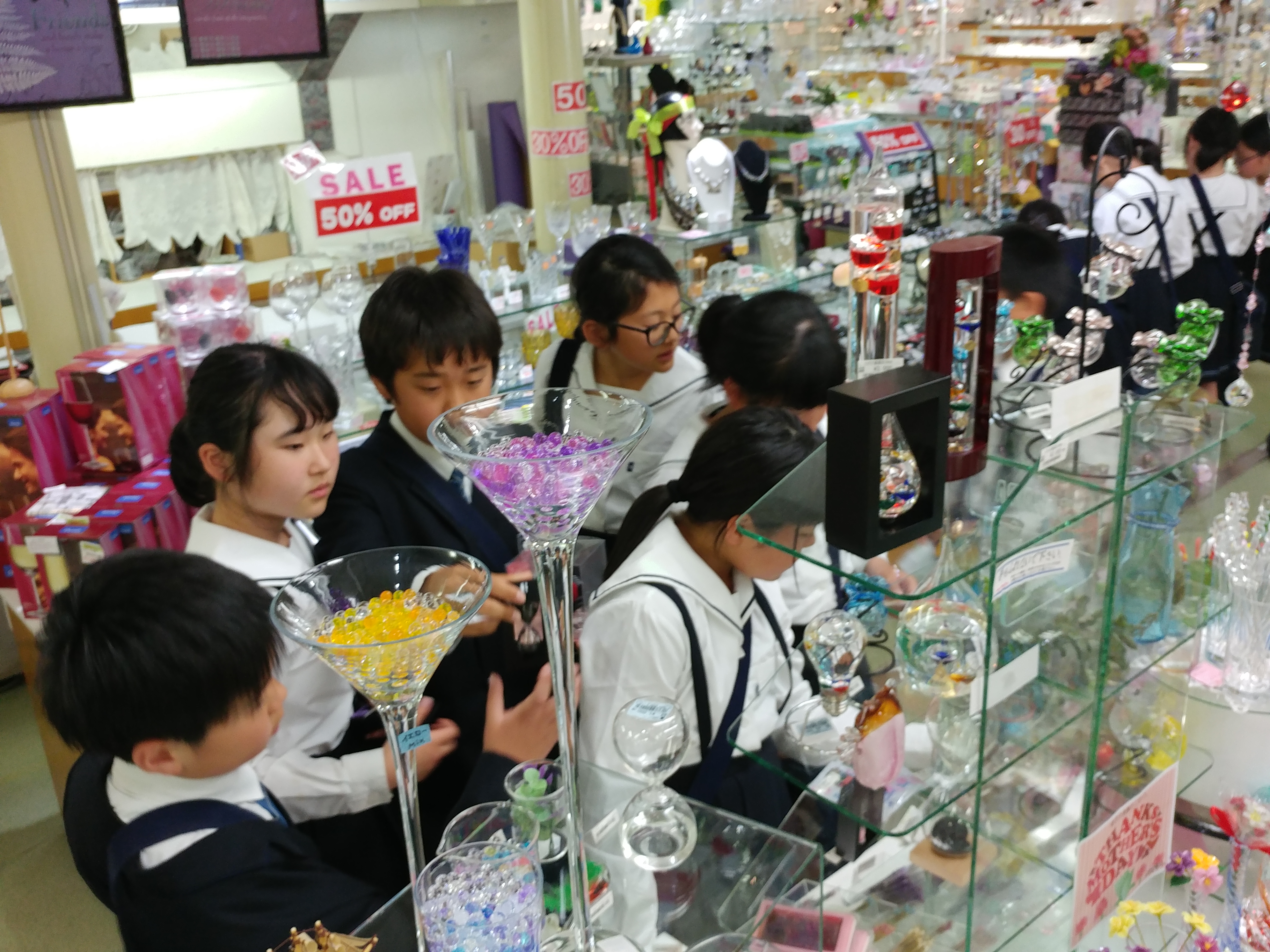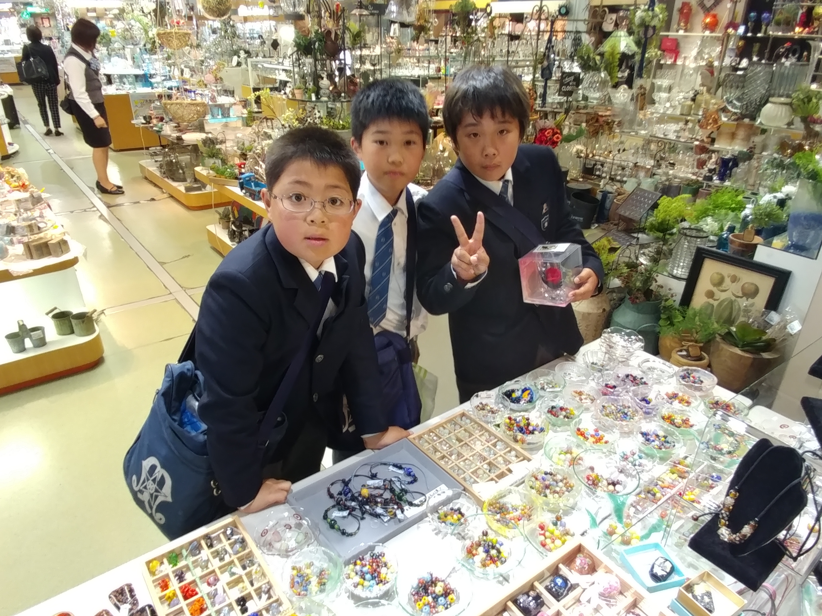 きれいなガラス細工のお土産物屋さんに、喜ぶのは女の子のだけかと思いきや、意外にも多くの男の子も喜んでいました(^o^)