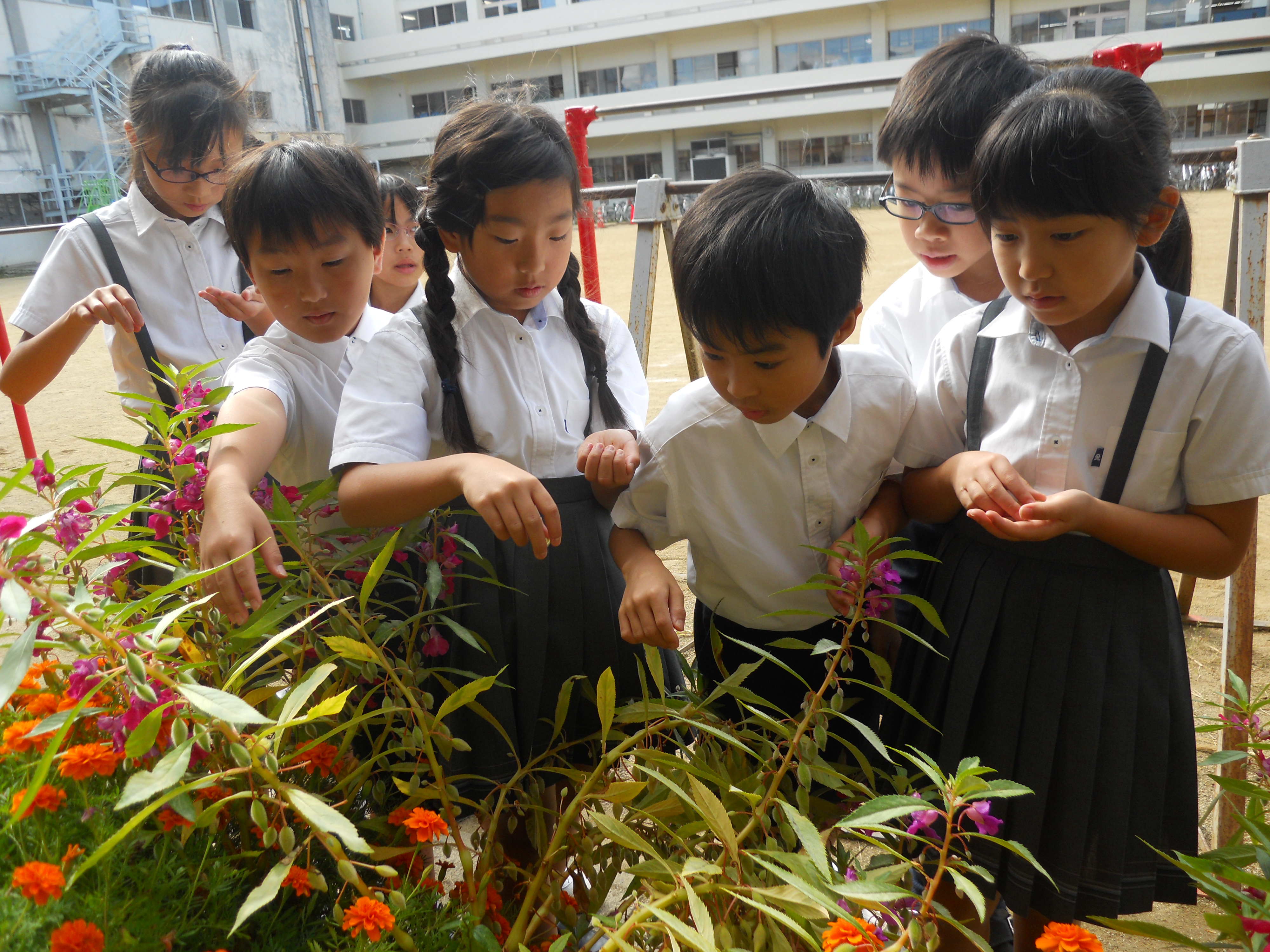 昨年の学習を思い出しながら、ホウセンカの実をさわって中の種がはじき飛ぶ様子を観察しました。