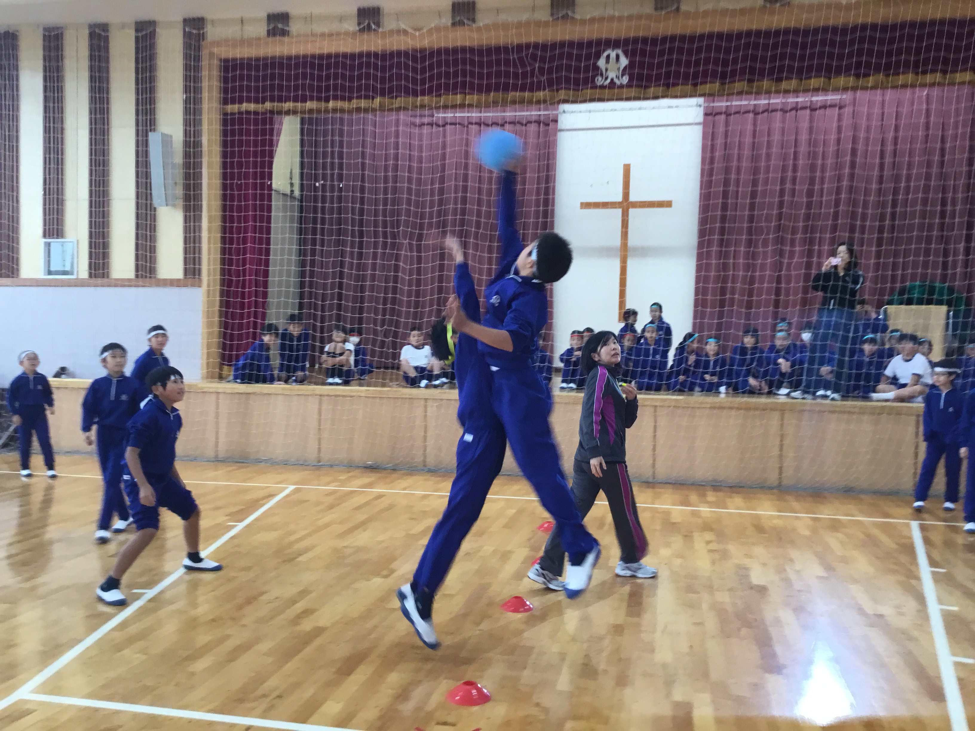 あいにくの雨だったので、体育館で行いましたが、子どもたちはみんなフェアプレーを心がけてドッヂボールを行いました。チーム一丸となって取り組む姿はザベリオの子どもたちらしい、とても素晴らしいものでした。
