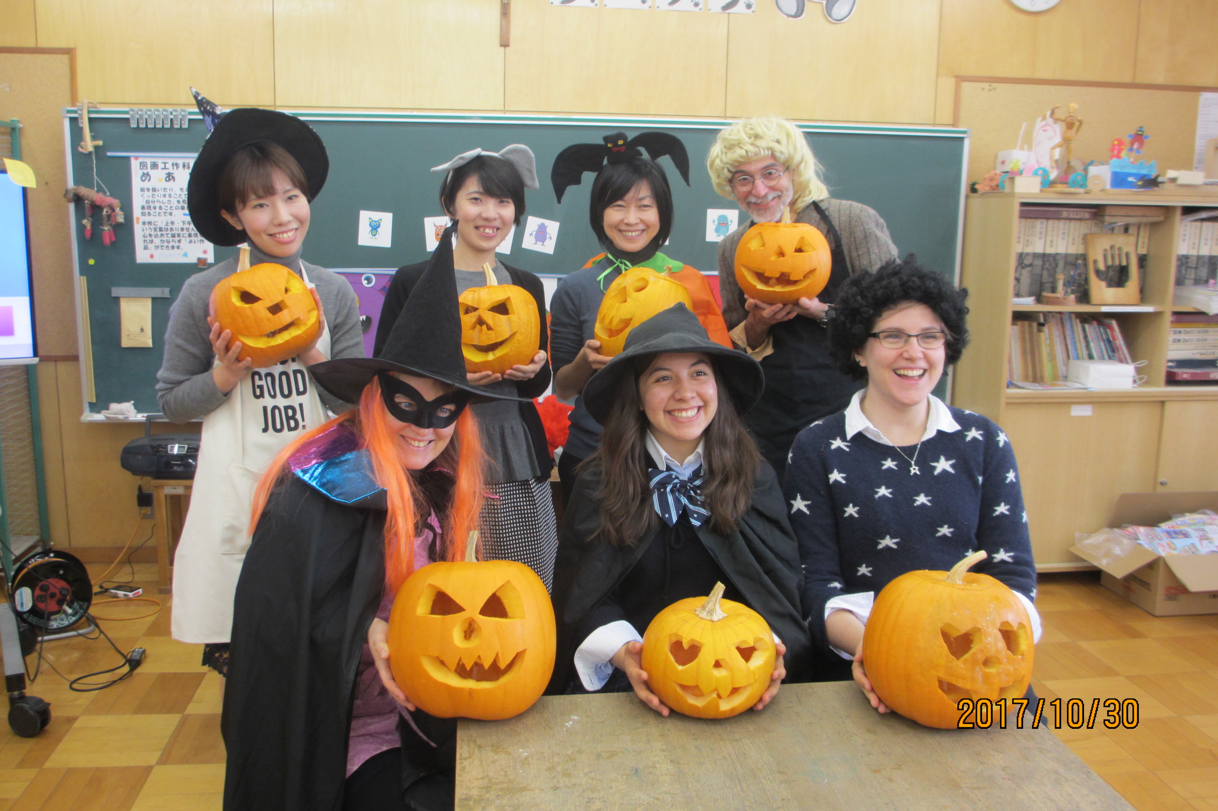 小学校の英語の先生2人に加えて、中学校や高等学校の英語の先生や、留学生も一緒に活動しました。