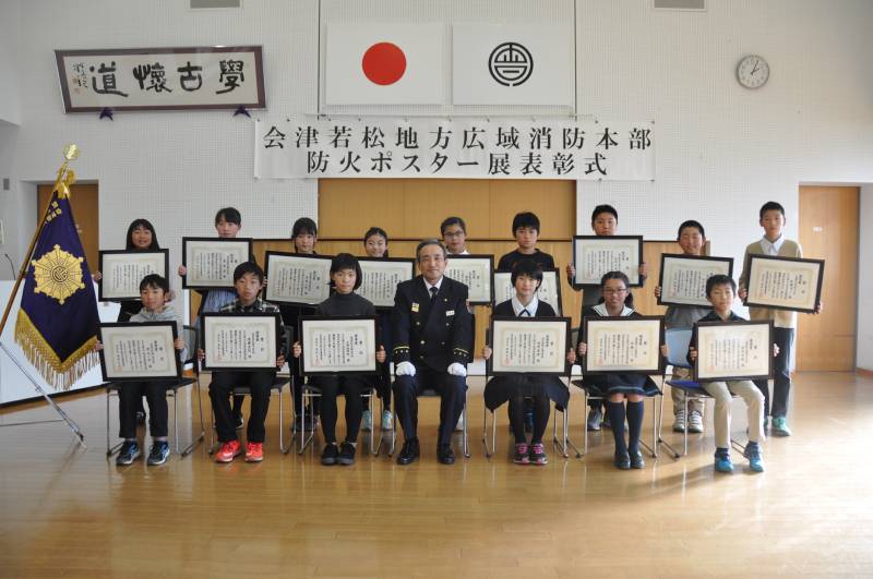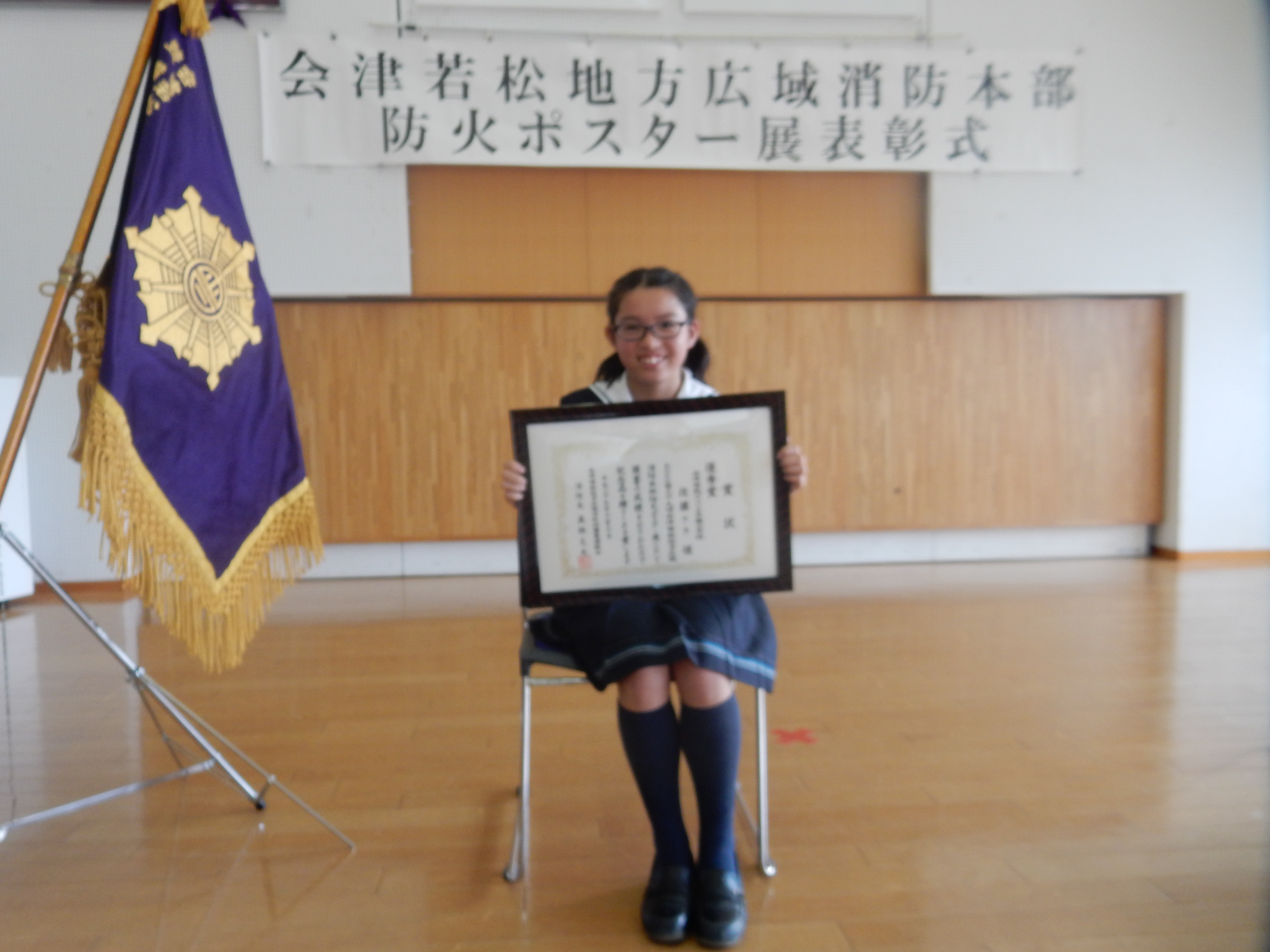 11月10日(金)に防火ポスター展の表彰式が行われ、本校6年の佐藤さきさんが参加しました。