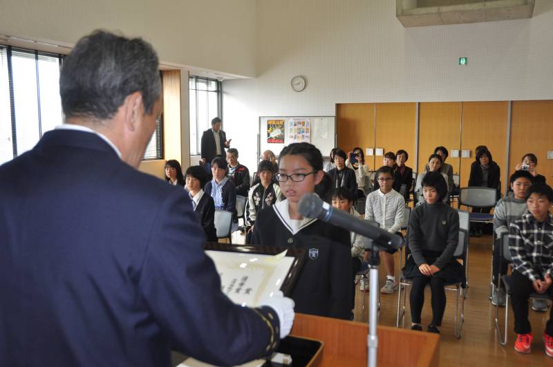 佐藤さきさんは見事優秀賞に選ばれ、大きな賞状を授与されたり顔写真と作品の写真入りのポスターをいただいたりしてきました。
