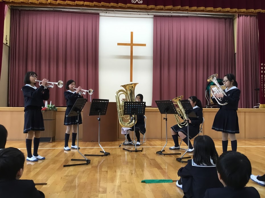 また、12月9日(土)にアンサンブルコンテストに出場する音楽部のメンバーが、全校生の前で発表を行いました。