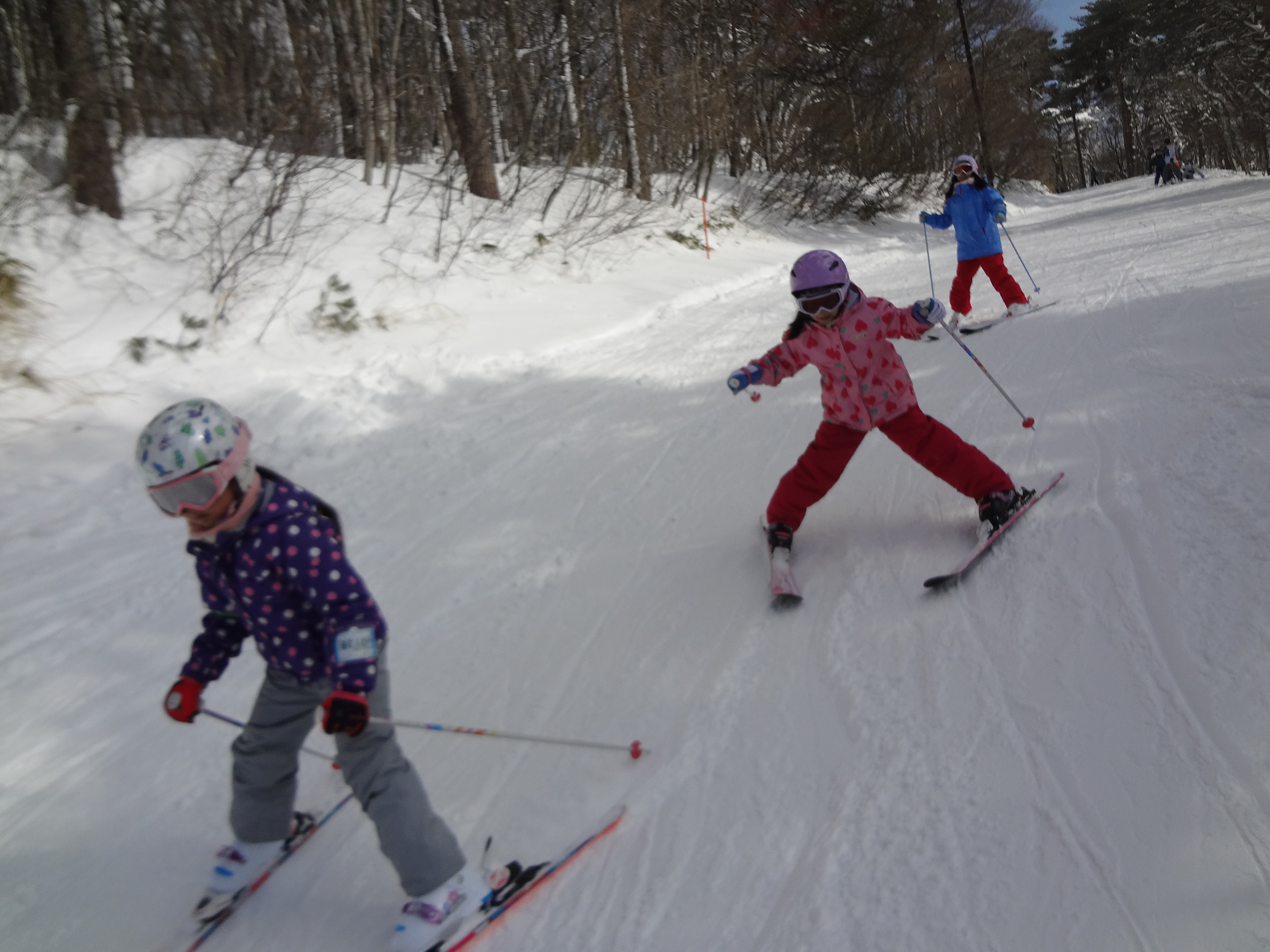 子ども達は、インストラクターの先生の話を聞いたり真似をしたりしながら、スキーの技能力向上を目指して練習に励みました。