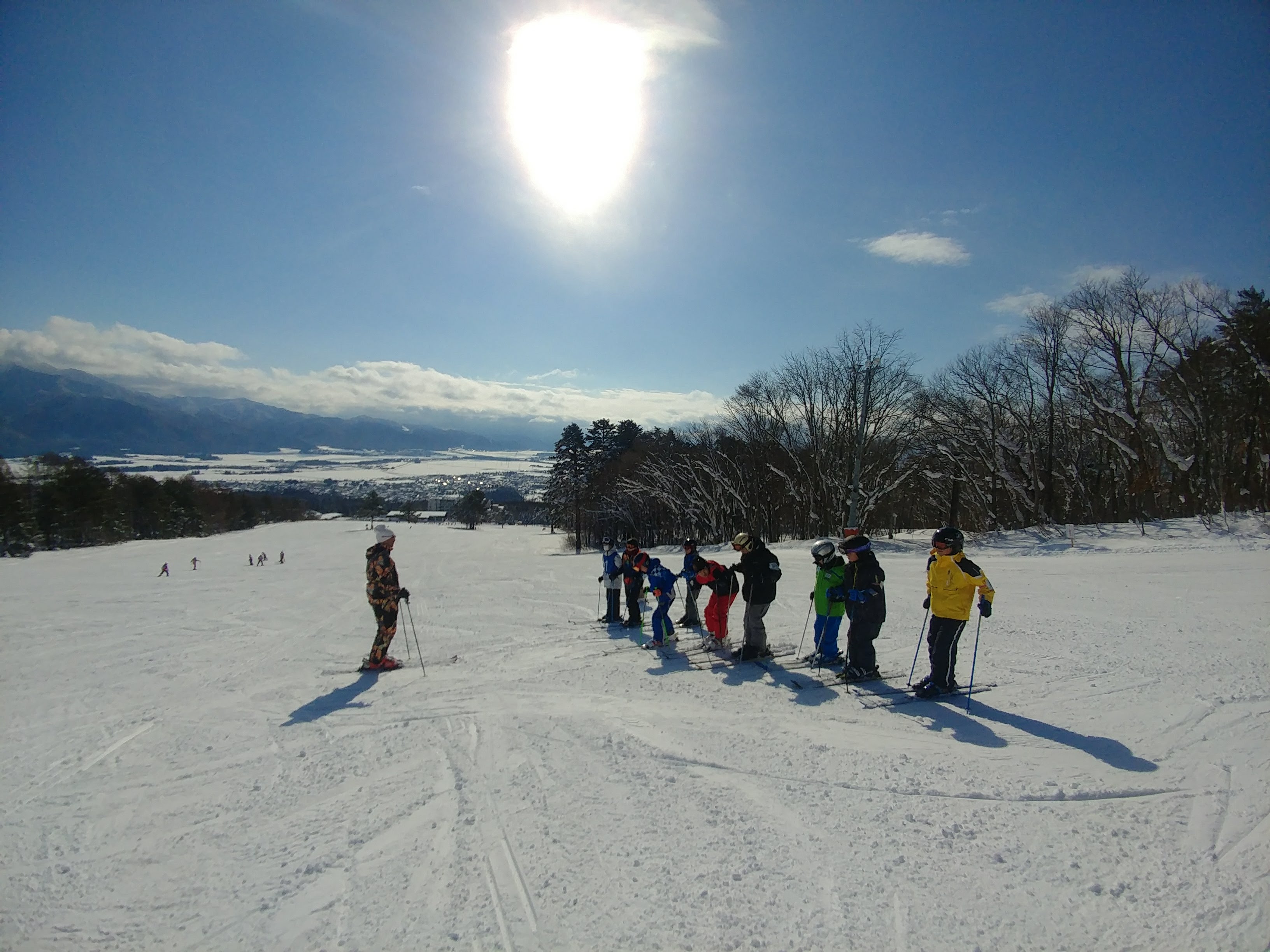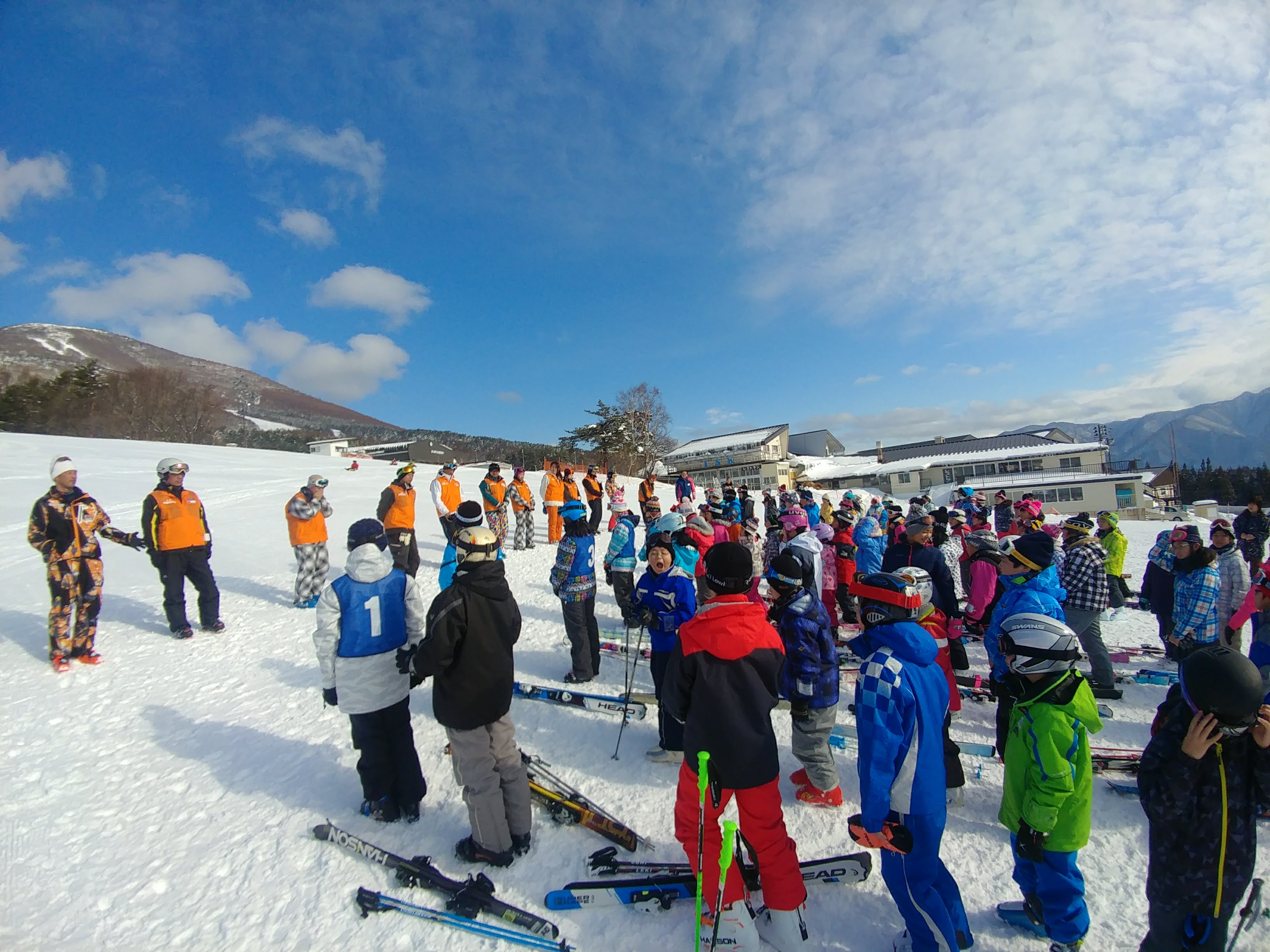 きれいな青空が見える最高のスキー日和の中、3~6年生が猪苗代スキー場で行いました。
