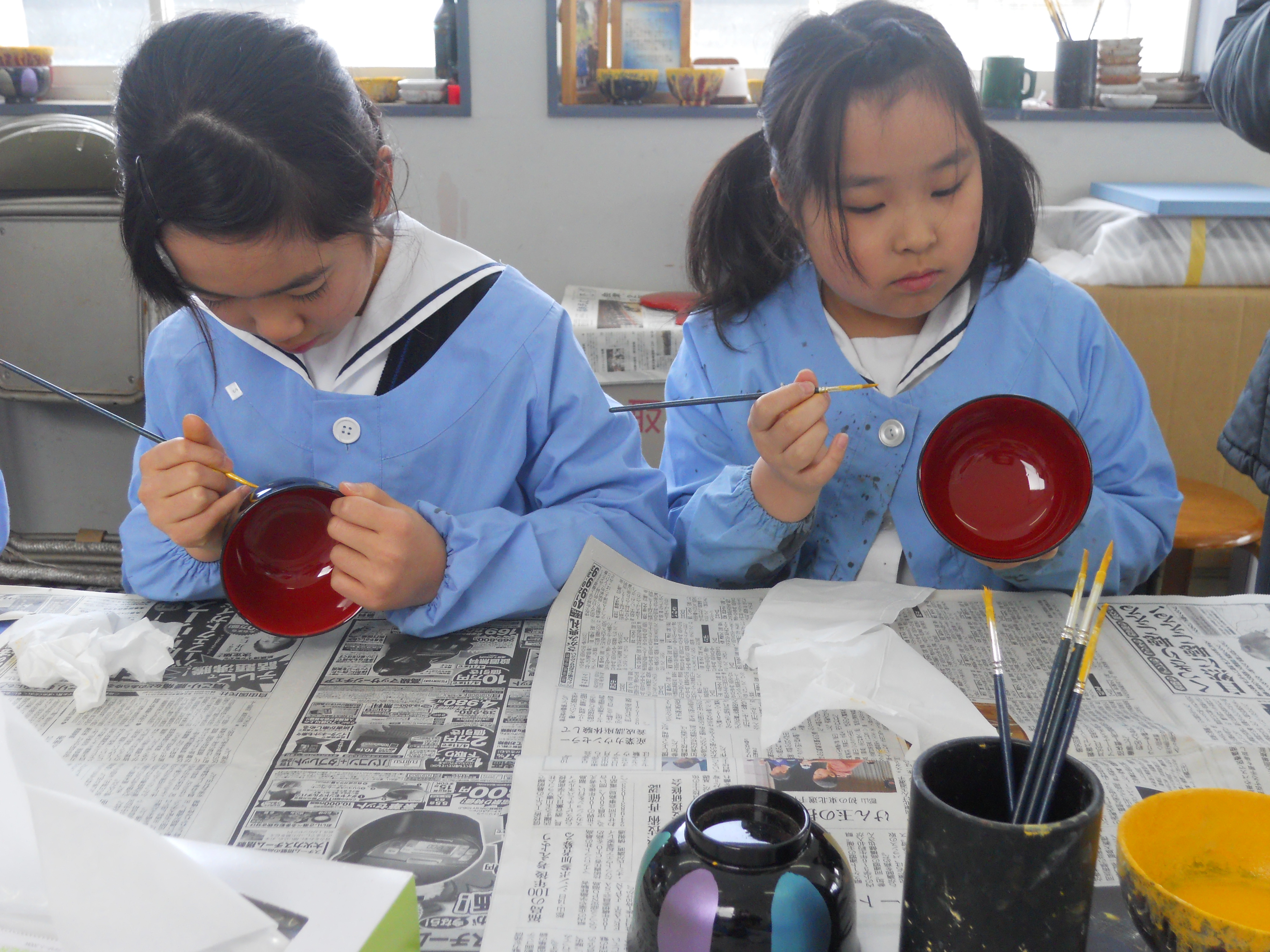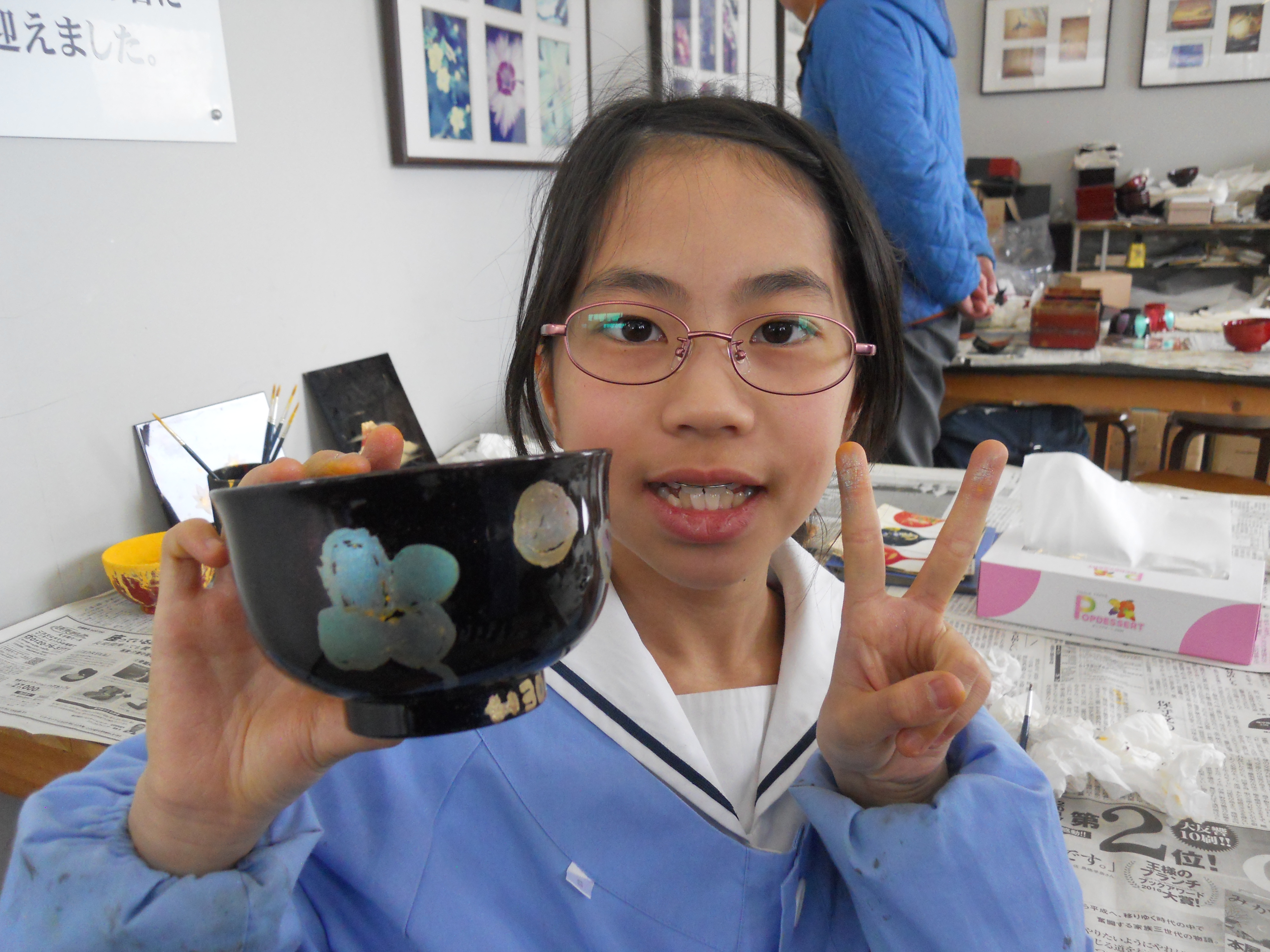 その技を少しでも知るために「漆器工房 鈴武」で蒔絵を体験してきました。職人さんたちの作業風景を見学した後、それぞれが思いのままにお椀に蒔絵をして、世界に一つだけのオリジナル椀を作ってきました。