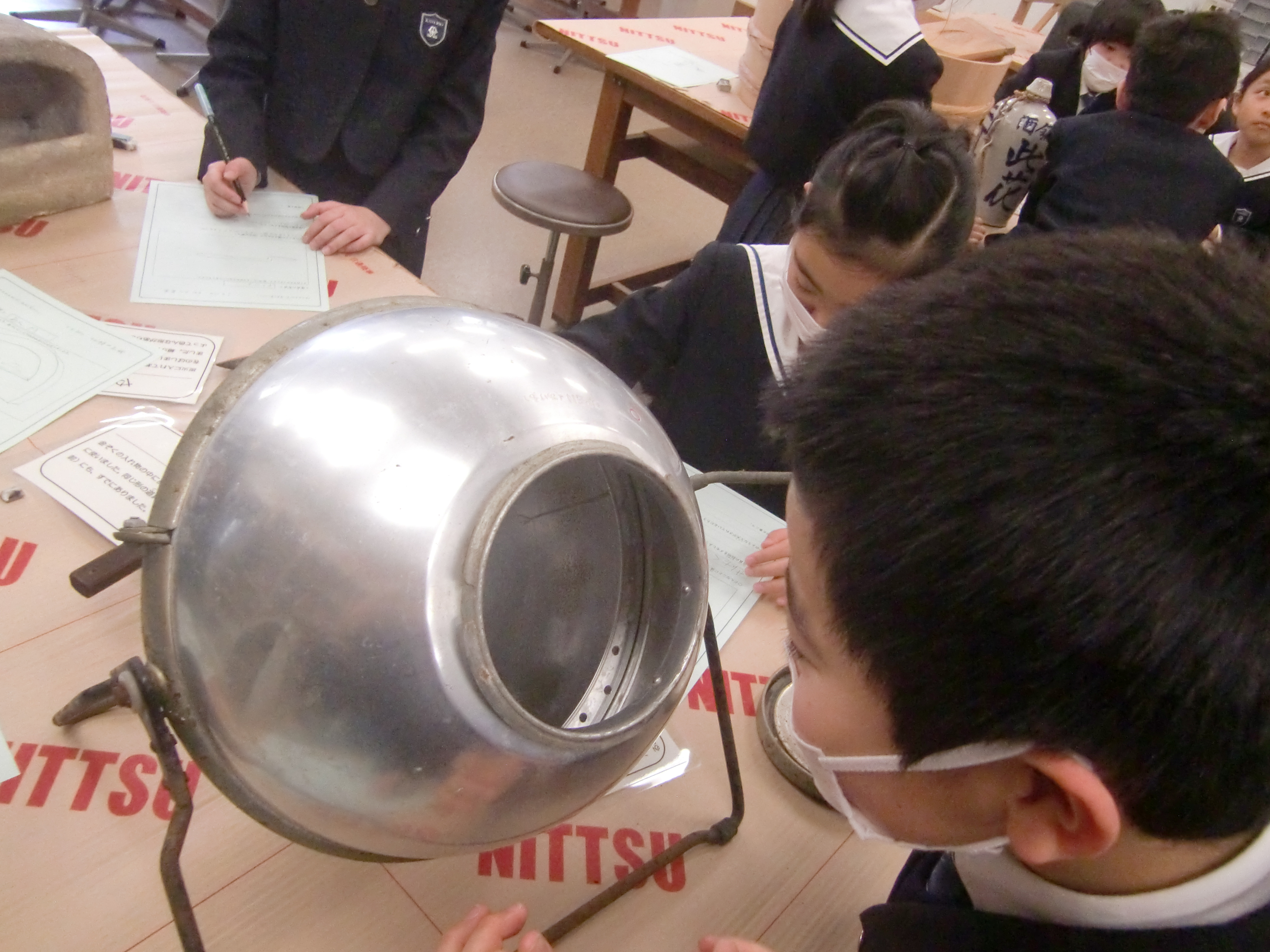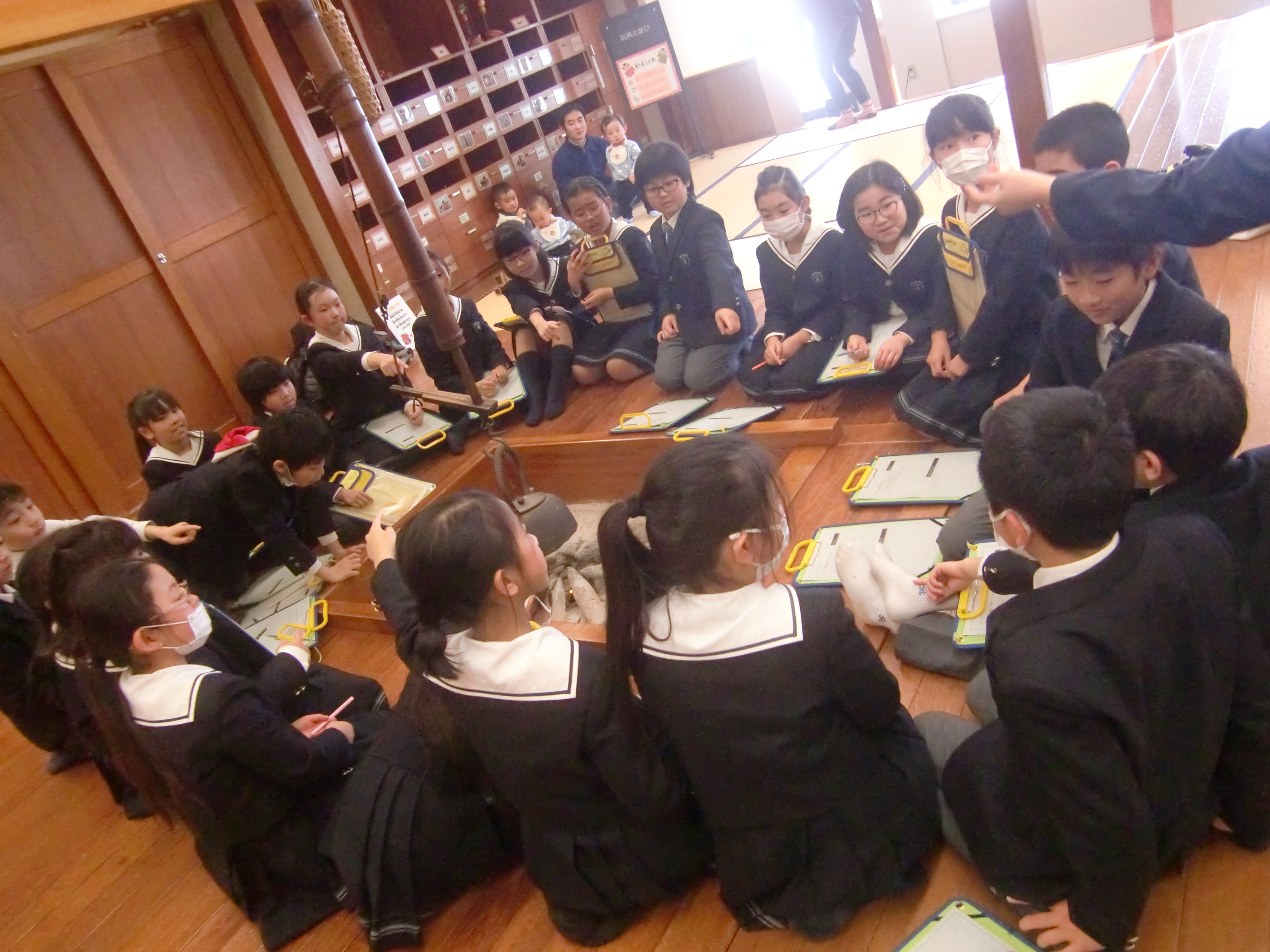 2月22日(木)昔の道具を見たり、体験するために県立博物館に行ってきました。学芸員の説明を真剣に聞いたり、初めて目にする道具を手にのぞいたり、回してみたり・・・普段の授業では見ることのできないような生き生きとしたまなざしをを見せてくれた子ども達でした。