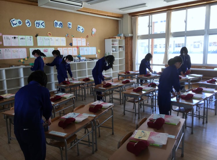 今日は5・6年生が登校し、教室移動や入学式準備をしてくれました。
