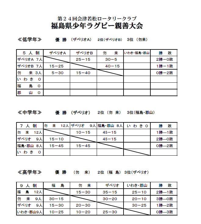 詳しくはこちらをご覧下さい。クリックすると大きくなります。 → ロータリー杯結果