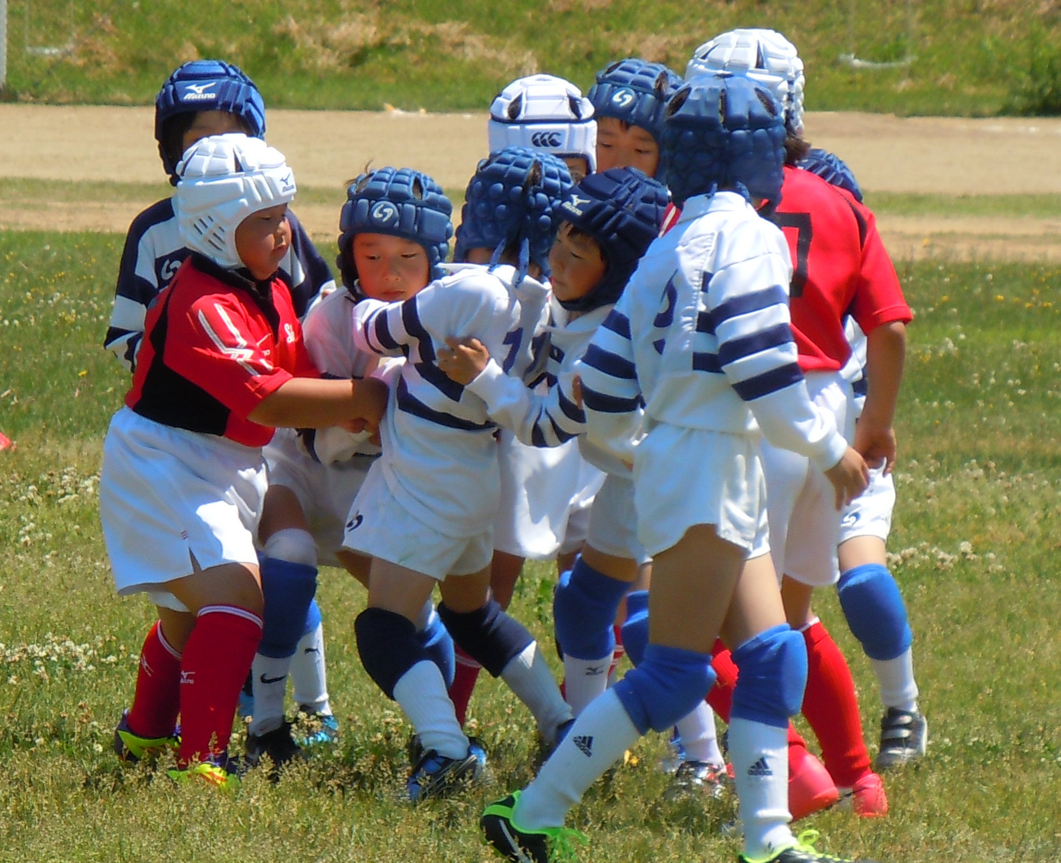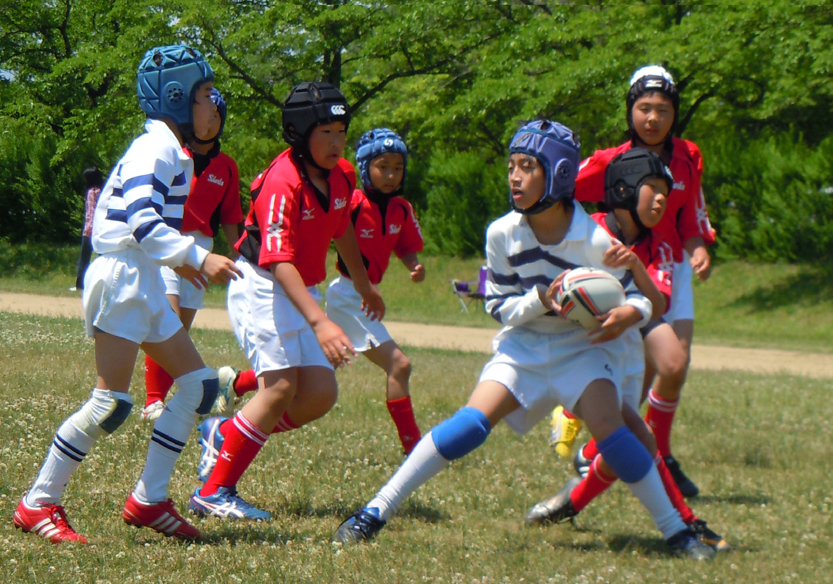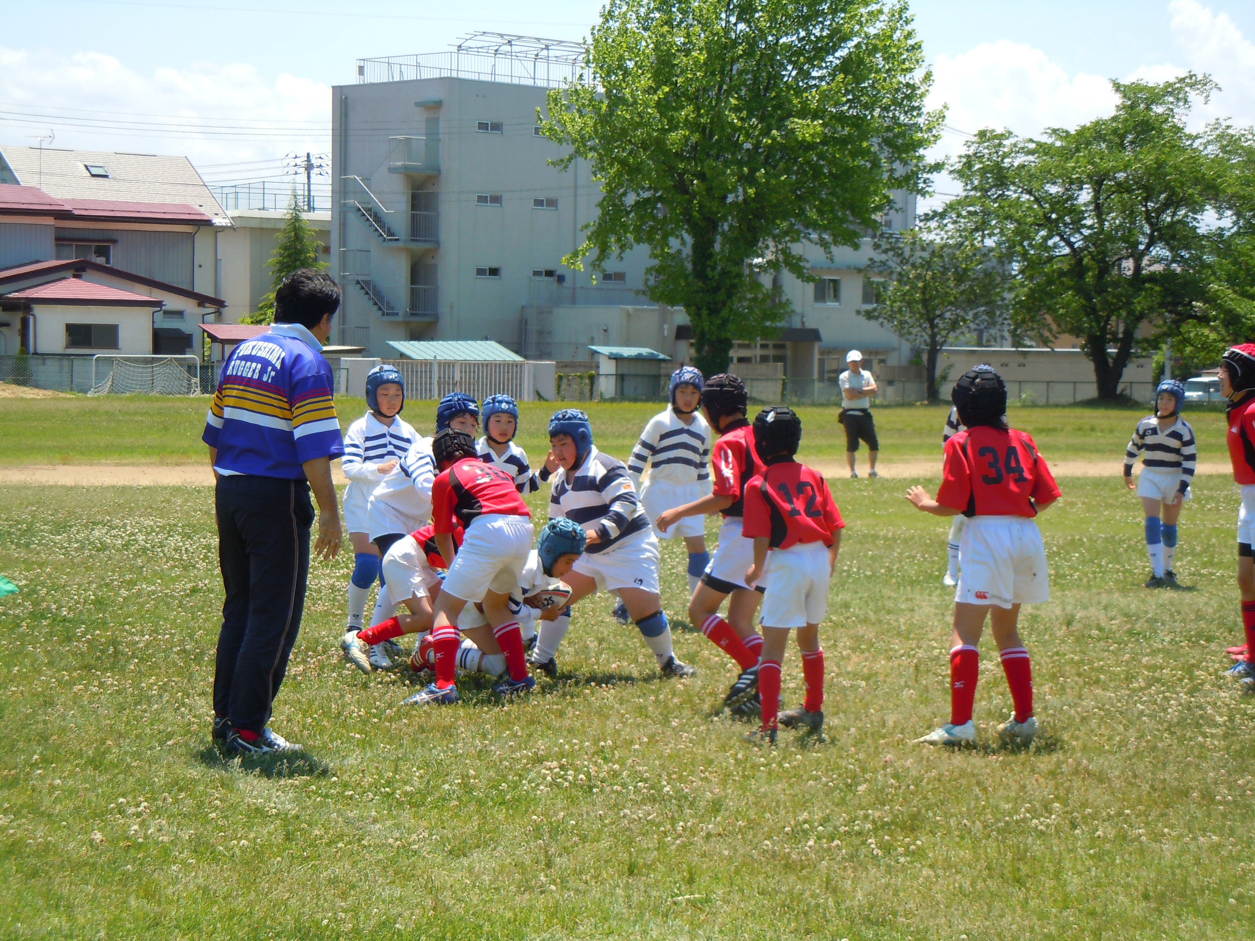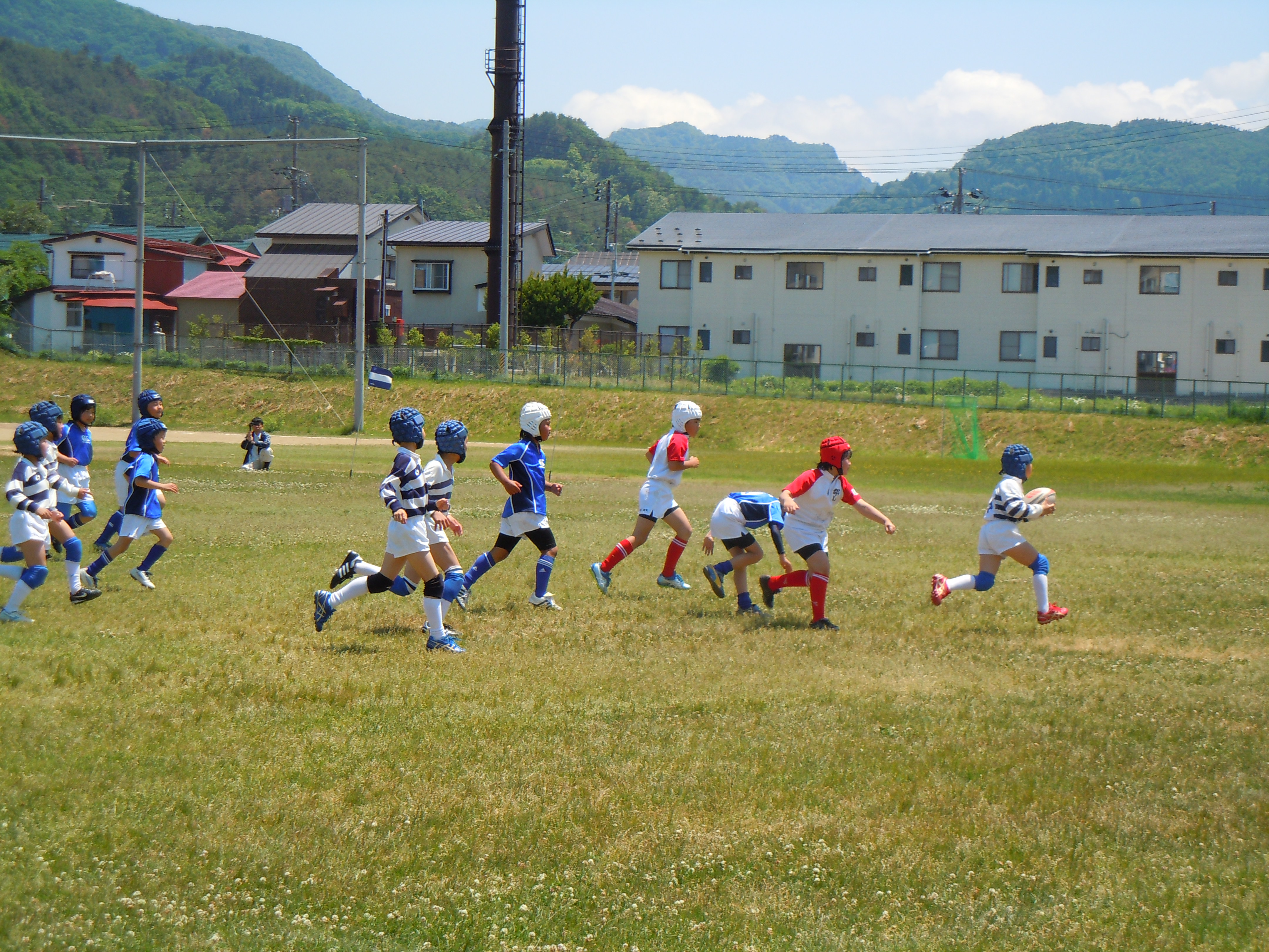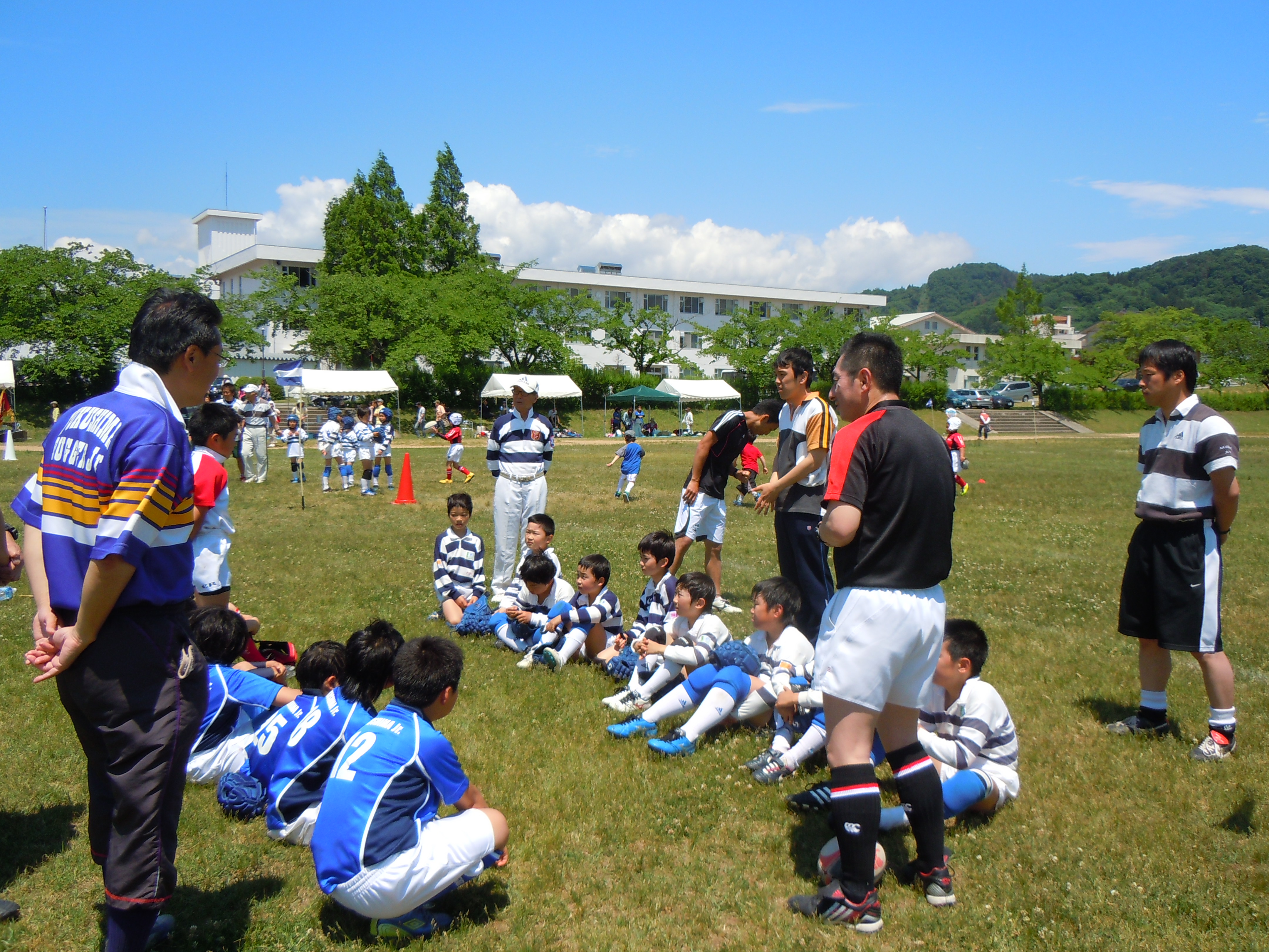 県内から5チームが集まり、今年度初めての公式試合です。新1年生も元気いっぱいラガーマンデビューを果たしました。