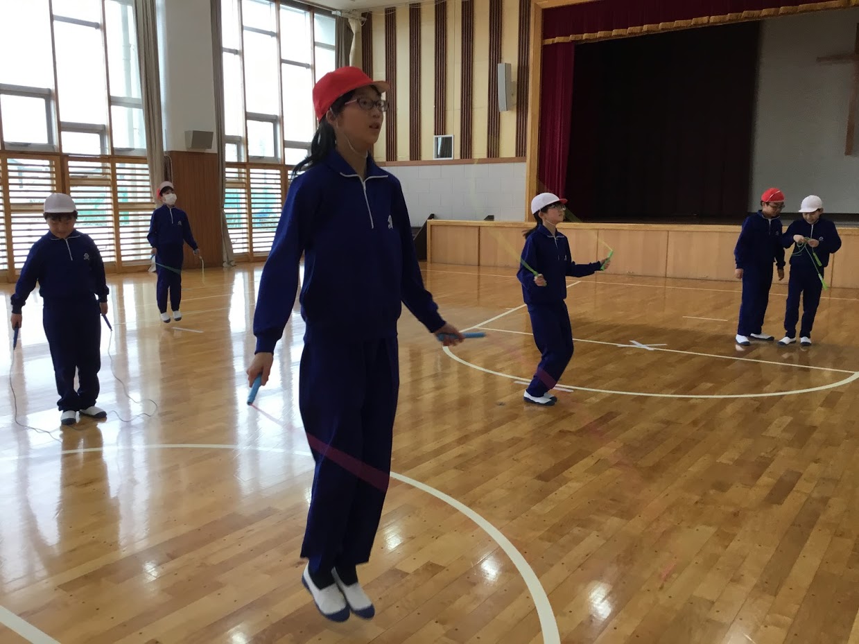 全校生の体育の授業で、冬期間の体力向上の運動としてなわとびを行っています。