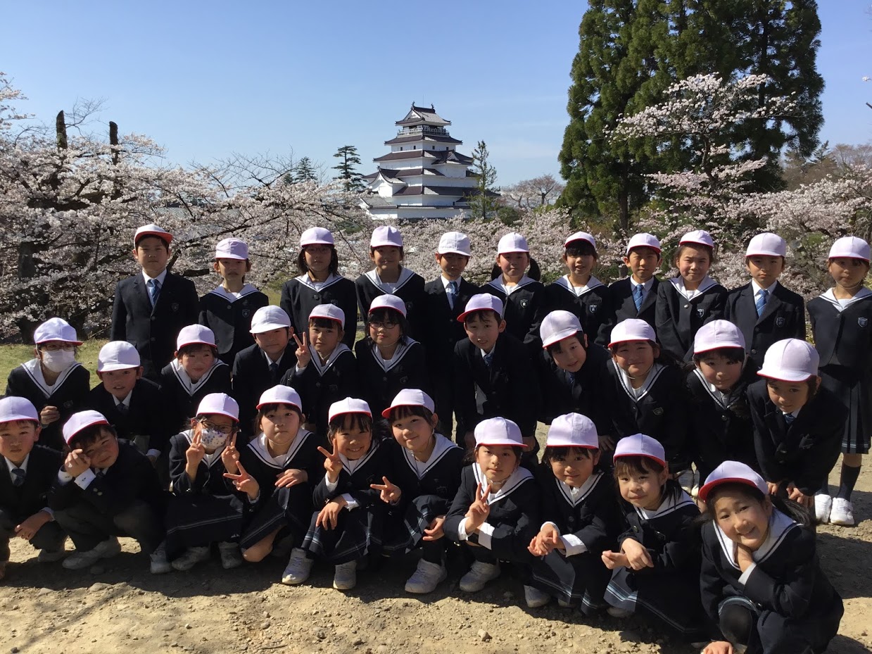 雲一つ無い晴天と満開の桜に子どもたちは、