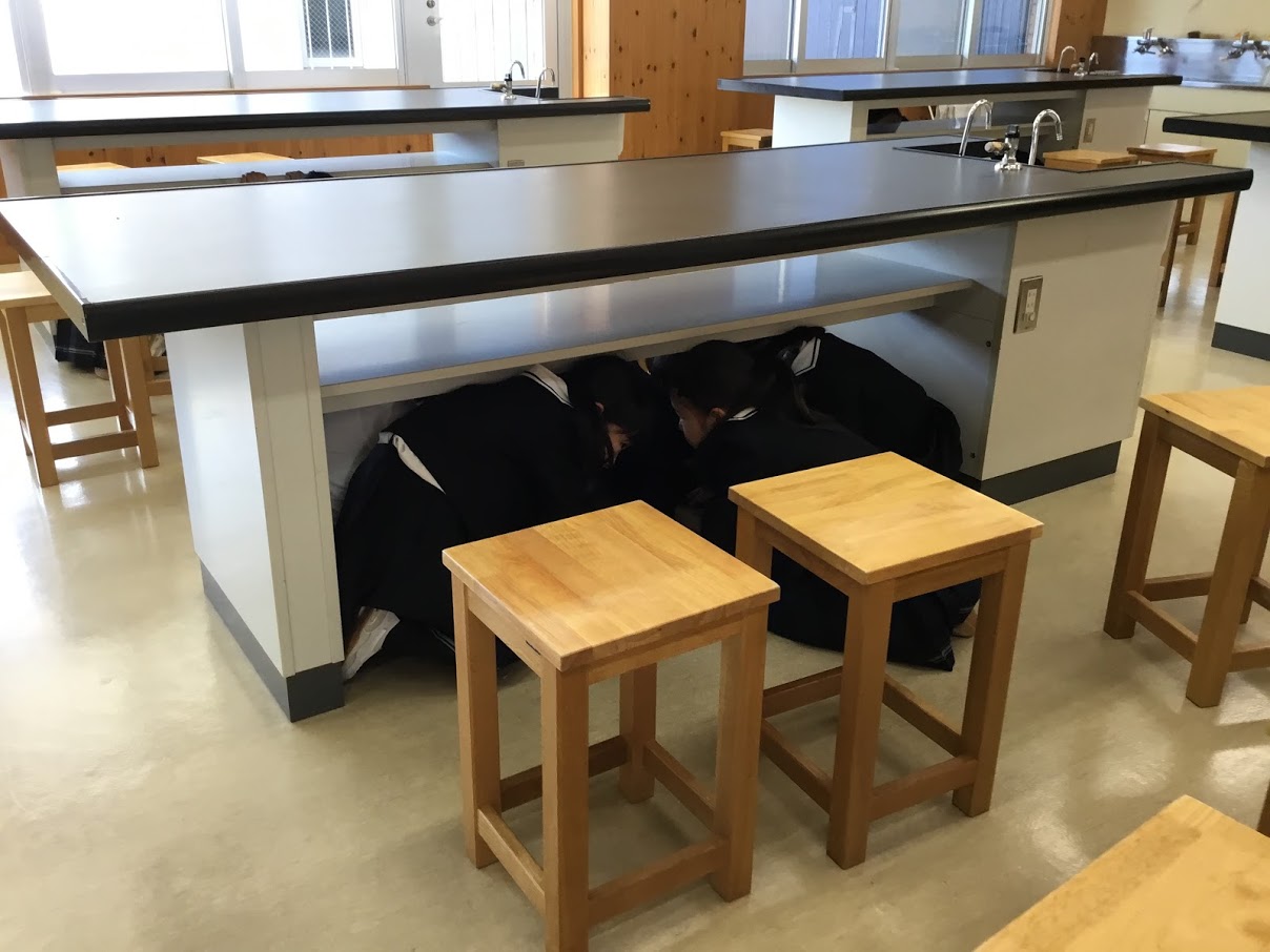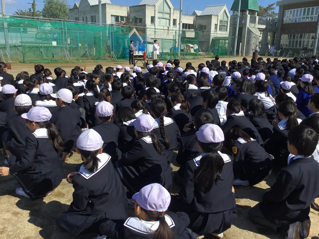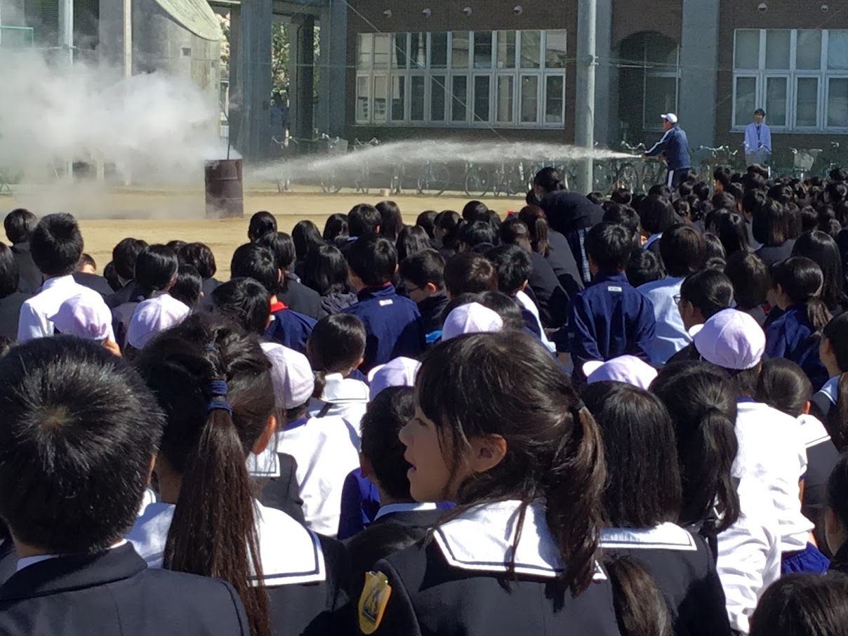 学園全体の会では火事や災害が起きた時に必要なことの話を聞いたり、