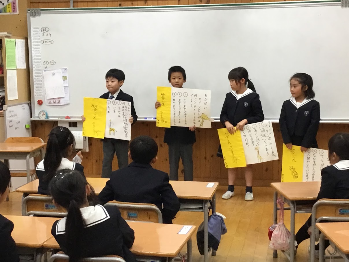 2年生が国語の学習で、「動物クイズ」をつくりました。