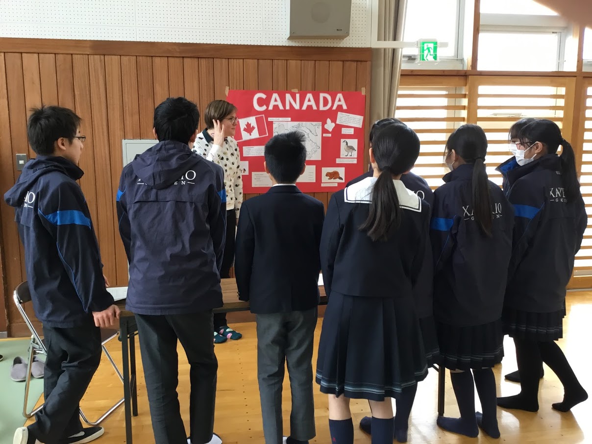 講堂内や中学校の校舎にあるブースを周って、様々な国にまつわる