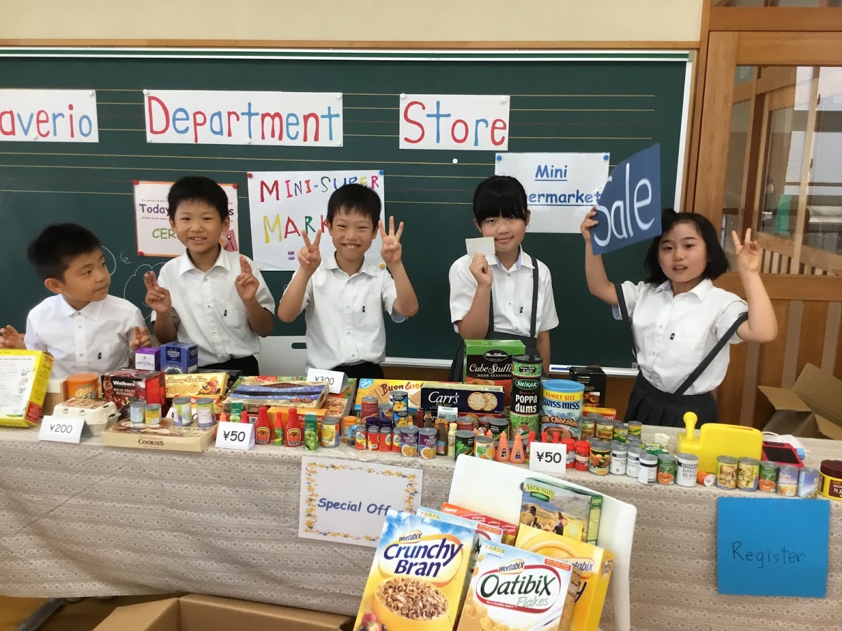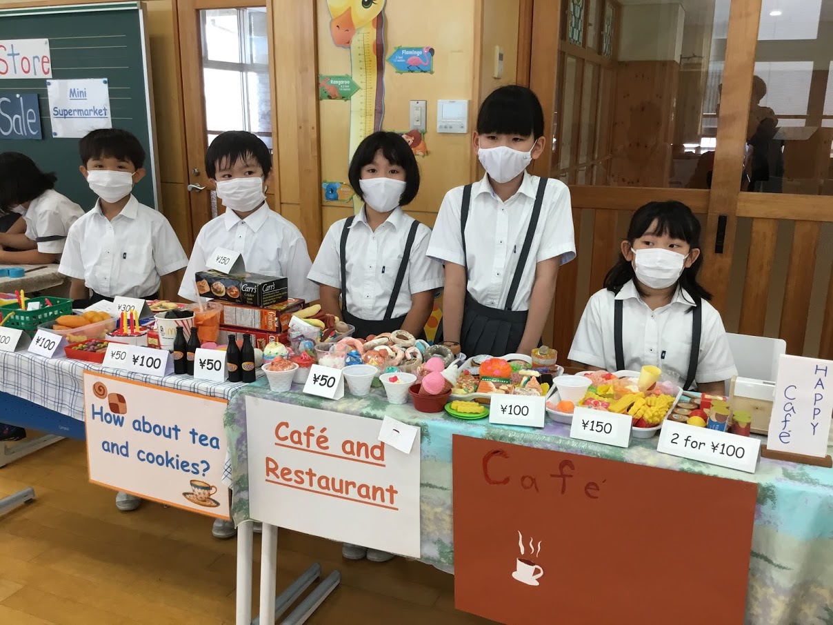 自分たちで店員さんとお客さんに分かれて英語を使って