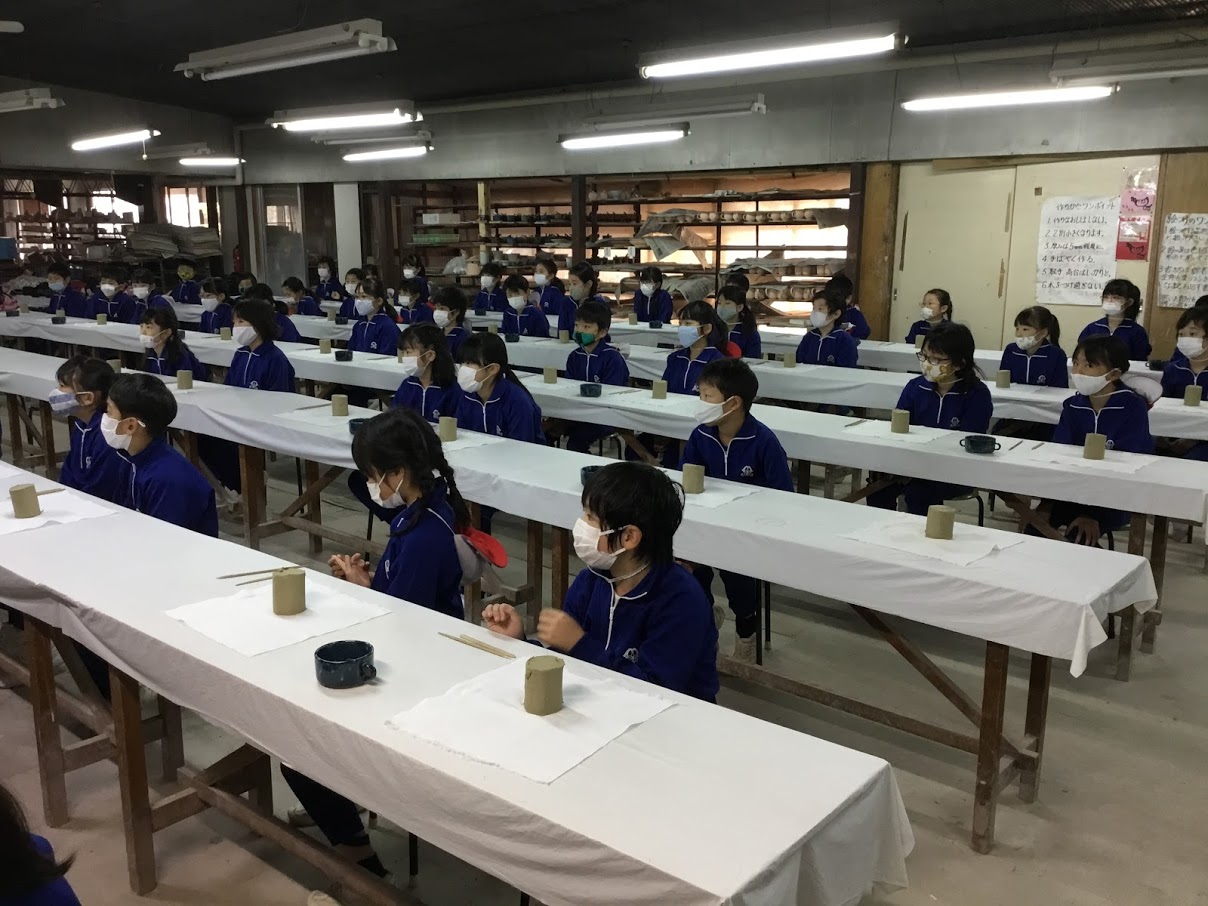 3,4年生は本郷に行って、本郷焼の手びねり体験をしたり、