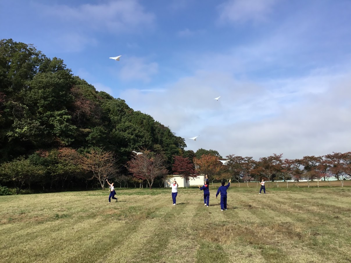 5,6年生は小田山に行って、手づくりの凧を上げたり、