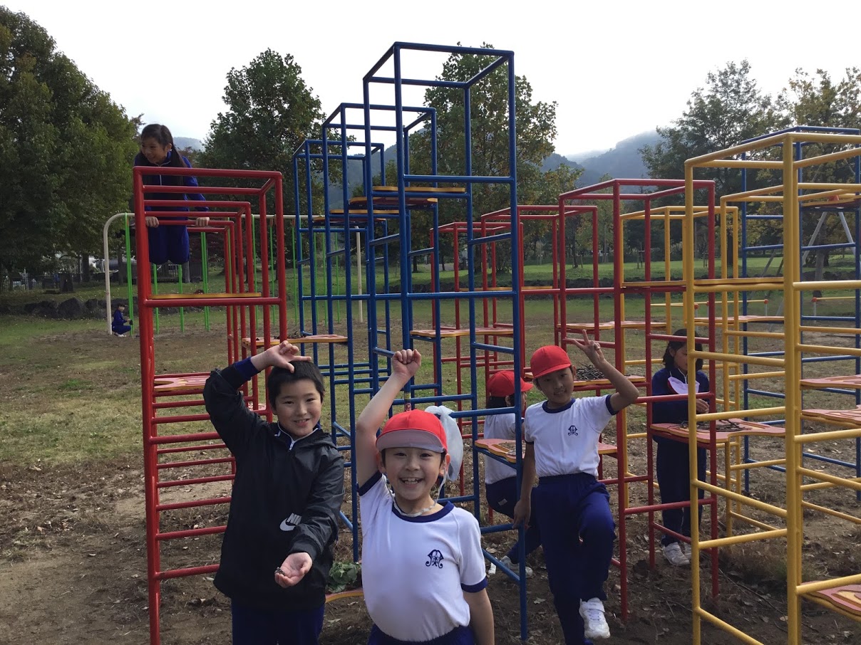 1,2年生は運動公園に行って、さまざまな遊具を使って